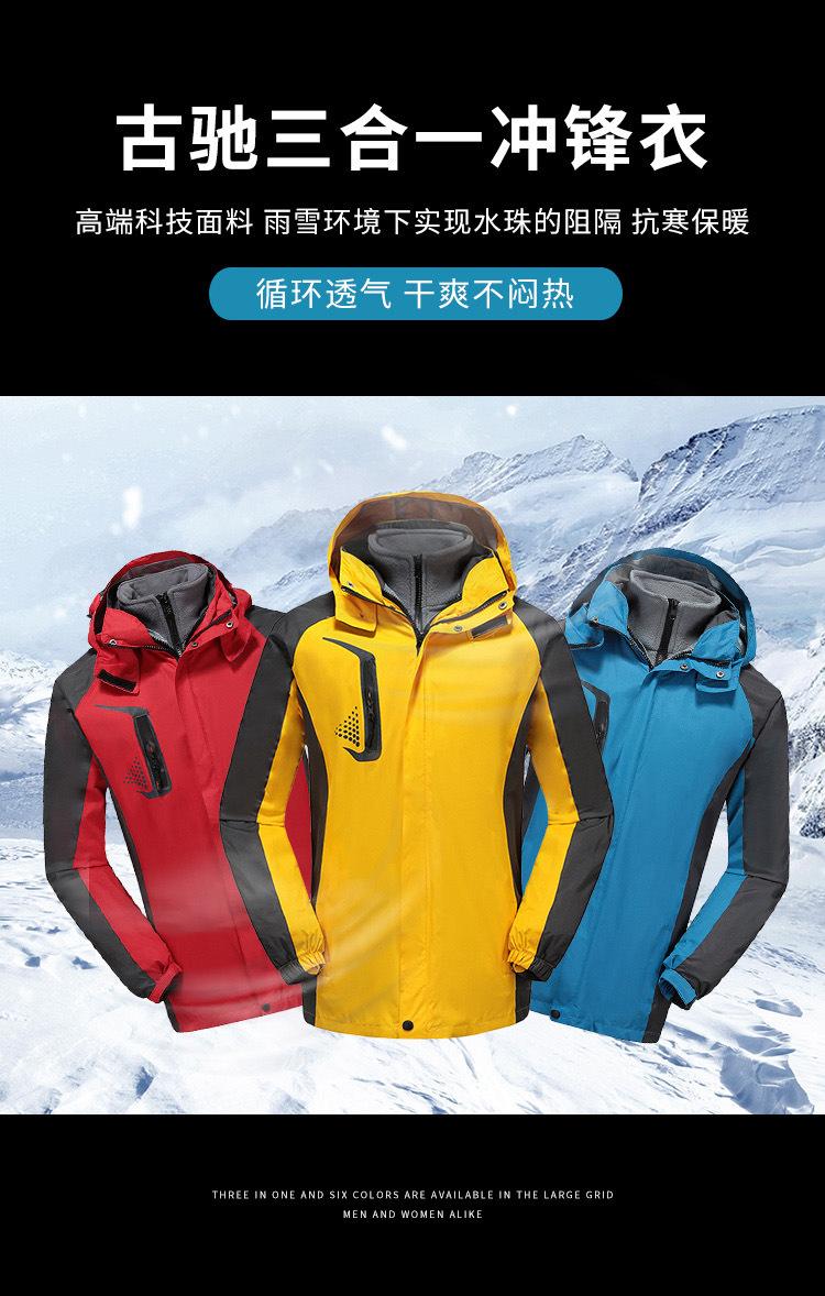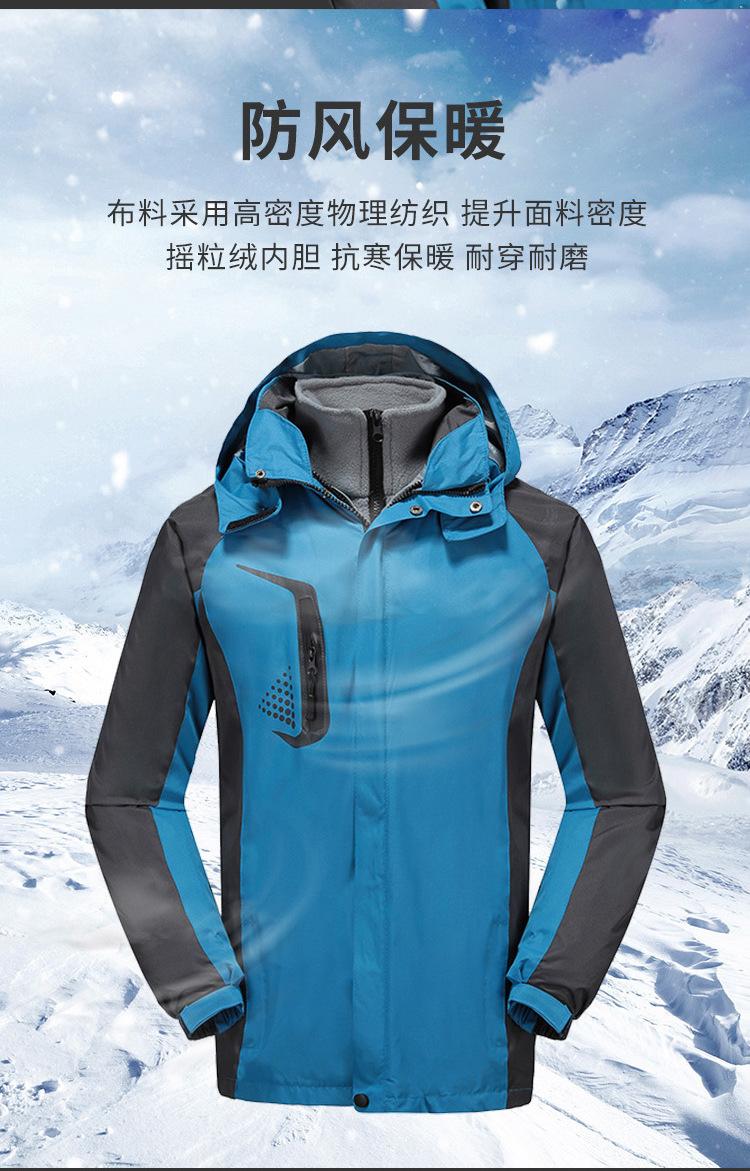Chaqueta Gruesa de Terciopelo Tres en Uno Invierno Cálido Ropa de Trabajo Grupal Impermeable Ropa de Esquí para Exterior con Logotipo Estampado
