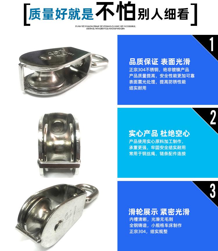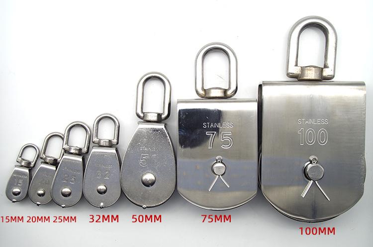 Polea simple de acero inoxidable 304, polea de tracción con cable de alambre, polea de corona, polea de elevación, polea de trepado con rueda de alambre móvil