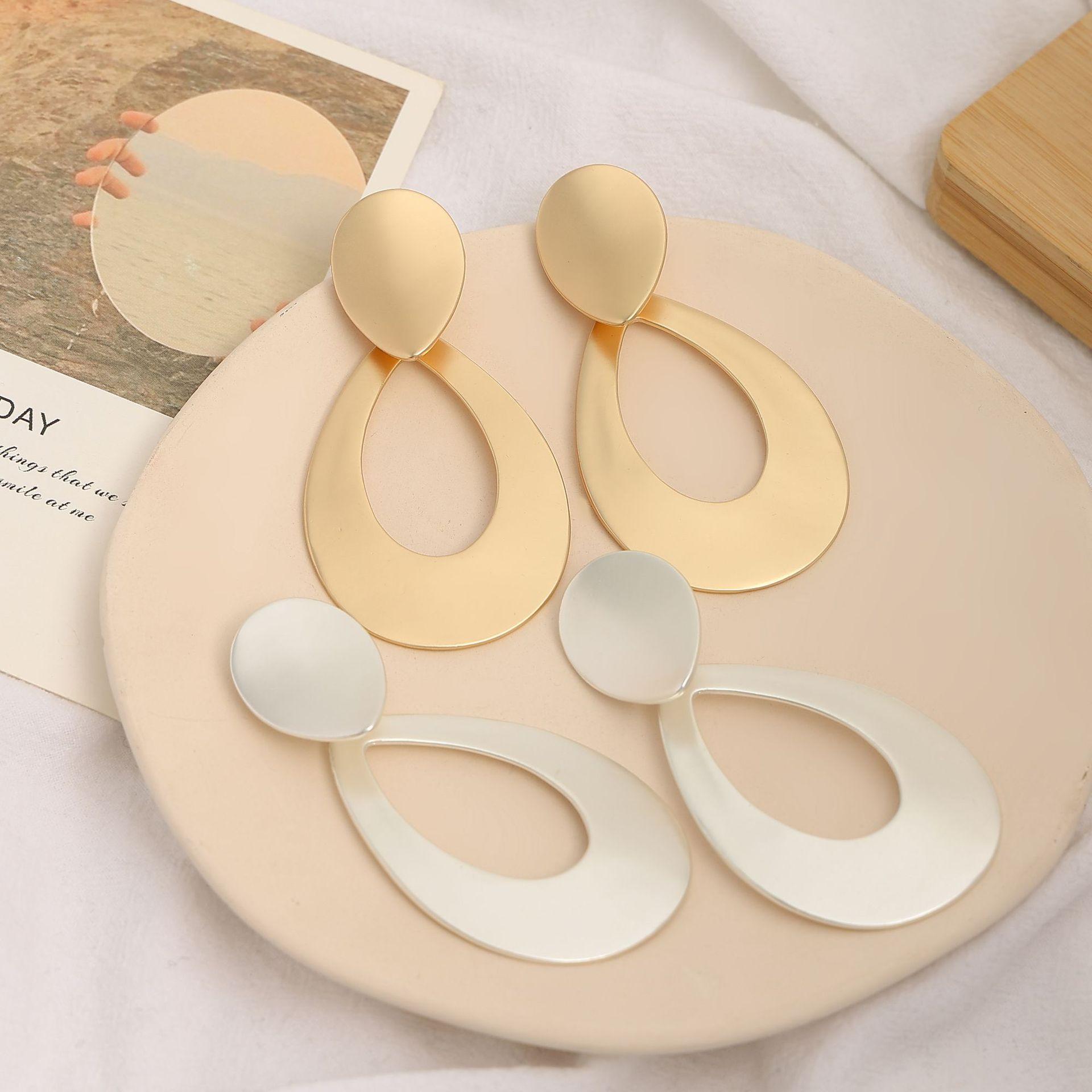 Pendientes elegantes y exagerados con textura de metal de Amazon, estilo europeo y americano, con forma de gota de agua geométrica, de longitud media, para mujer, al por mayor