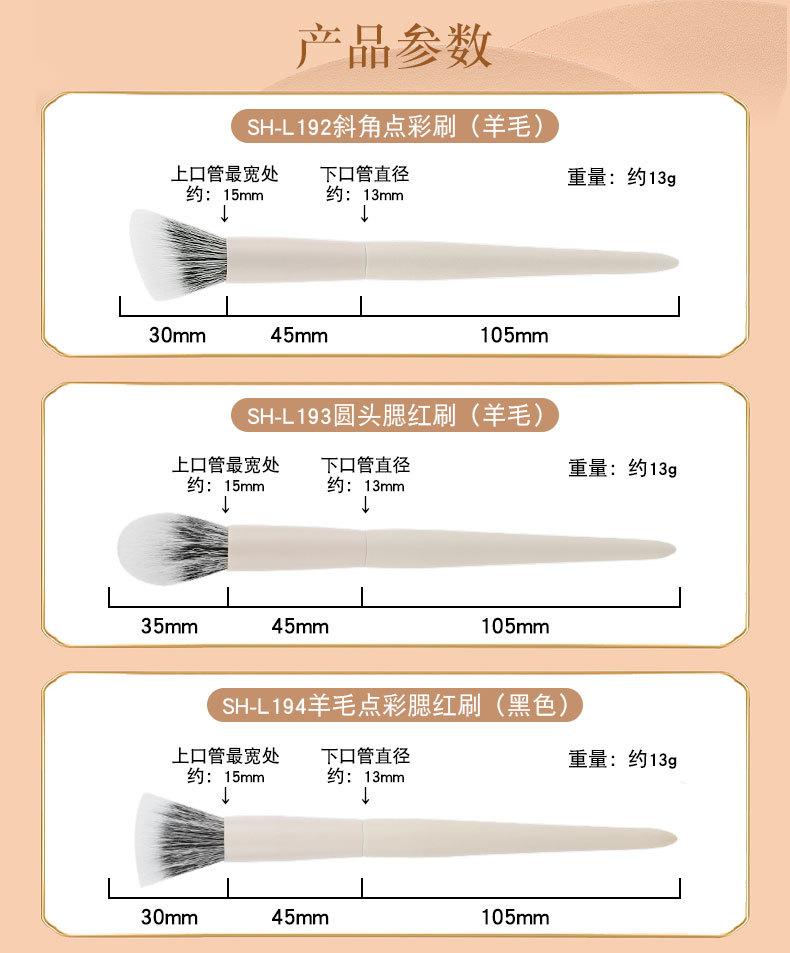 SH-L192 angLed point paint brush (wooL), SH-L193 round head bLush brush (wooL), YC-270 cloud porcelain series ...