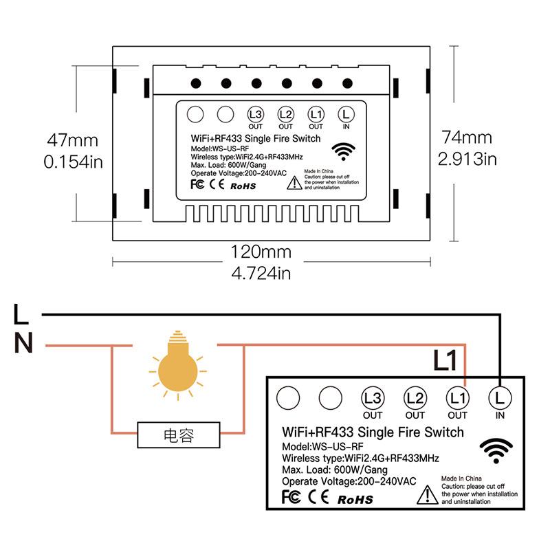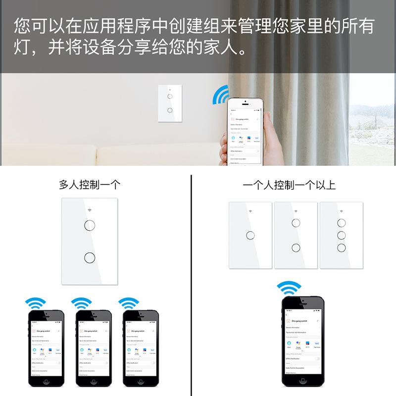 Interruptor inteligente de un solo polo wifi graffiti americano control remoto por APP para hogar inteligente panel de interruptor de pared con control remoto