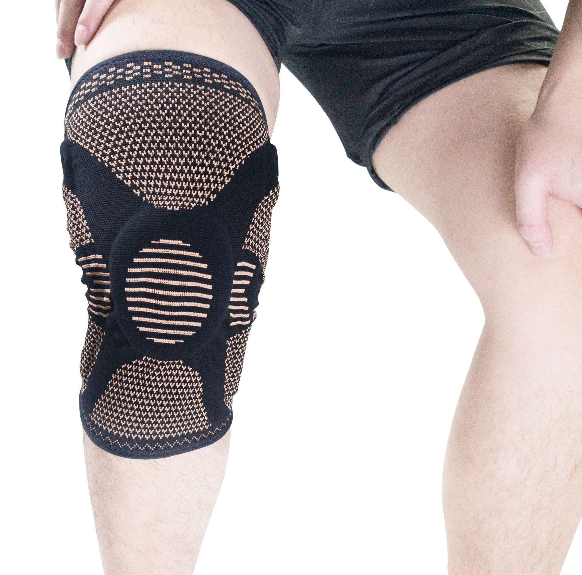 Rodilleras de soporte con tira de resorte de fibra de cobre, rodilleras deportivas de vida anticolisión
