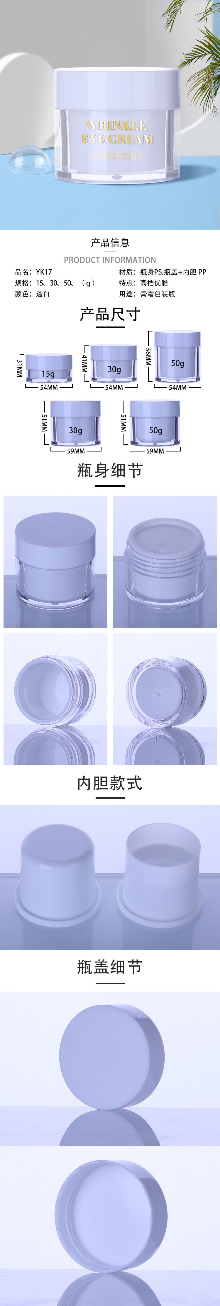 PS15-30-50G Frasco de crema con tapa blanca, mascarilla para ojos, crema corporal, loción corporal, crema de masaje en polvo, botella pequeña de plástico