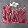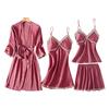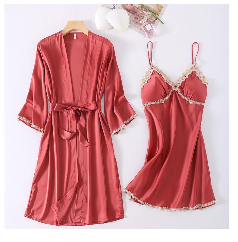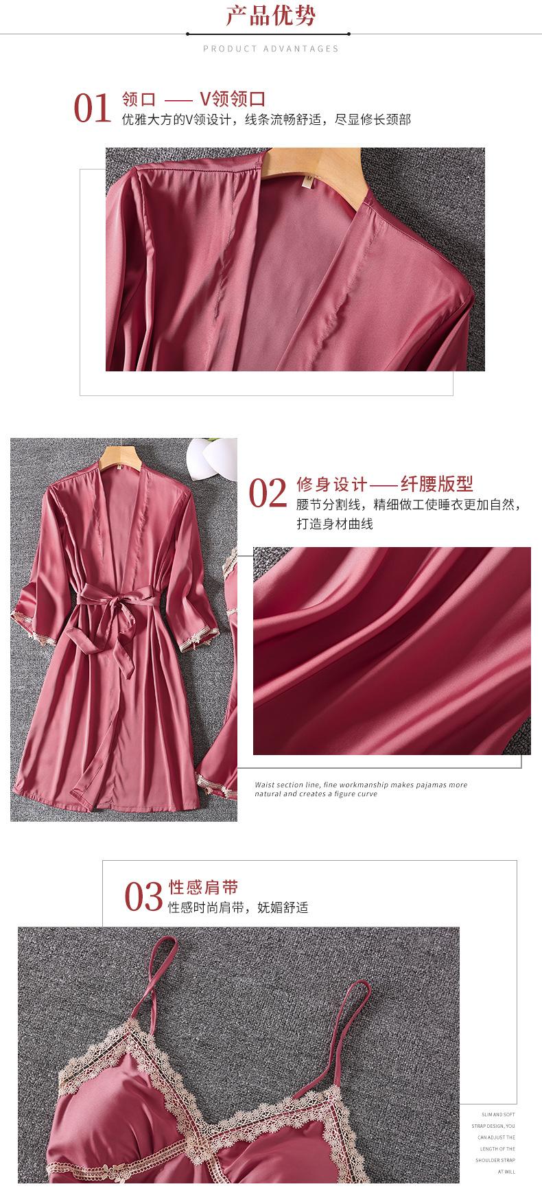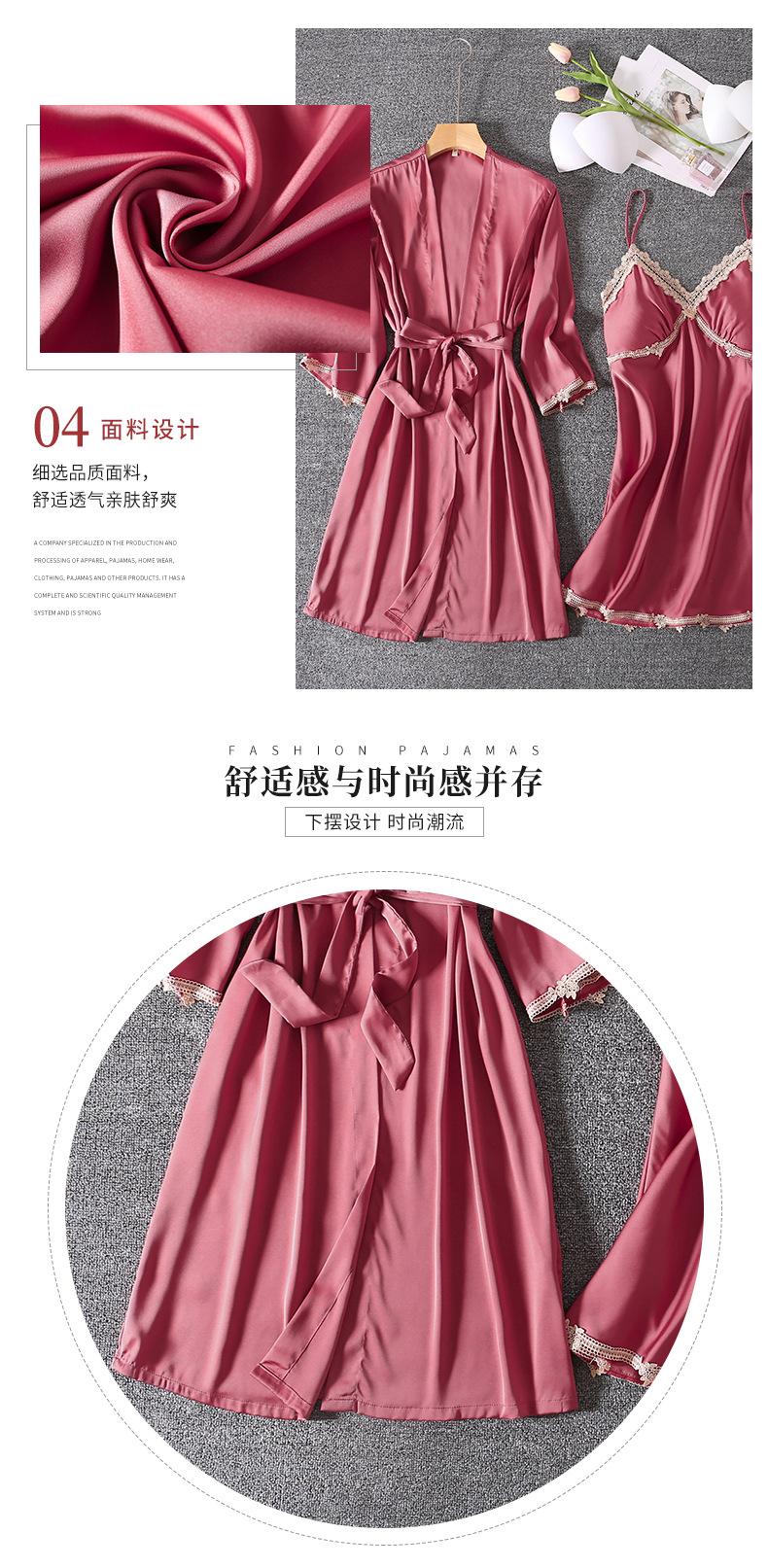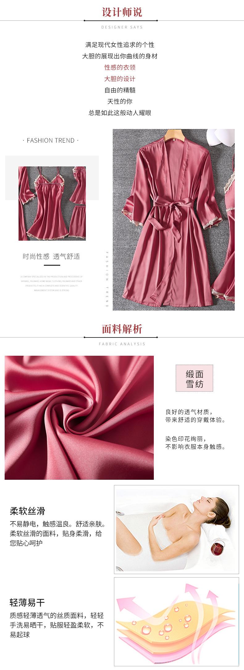 Conjunto de Cuatro Piezas de Camisón de Verano Estilo Coreano Delgado Sexy con Almohadilla en el Pecho, Cuello en V, Mangas Tres Cuartos, Ropa de Salón Cómoda