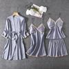 Gray (suspender shorts robe skirt), Black (suspender shorts, robe, suspender skirt), Peacock blue (suspender s...