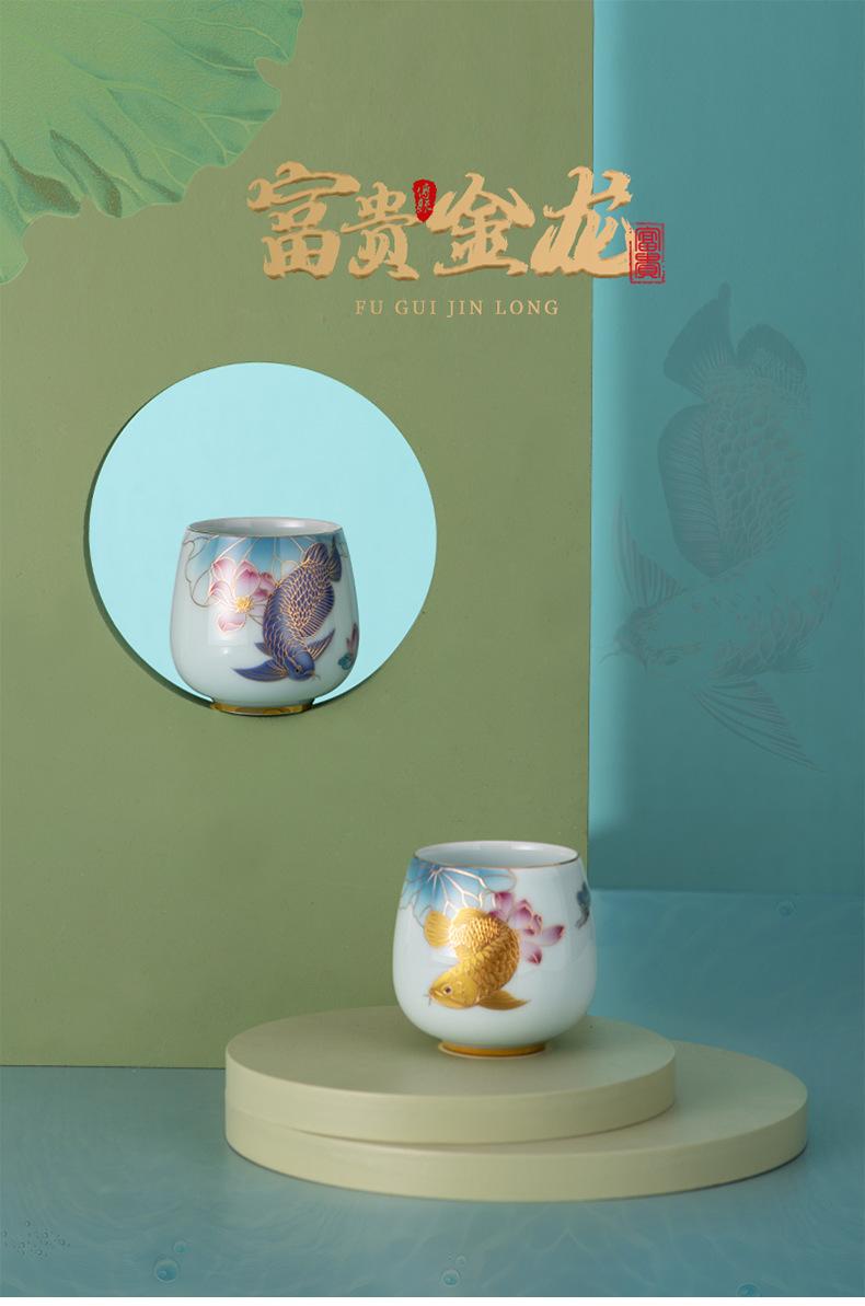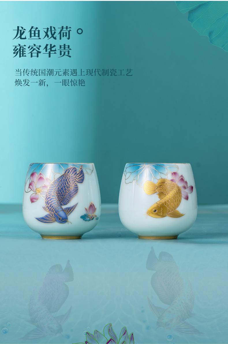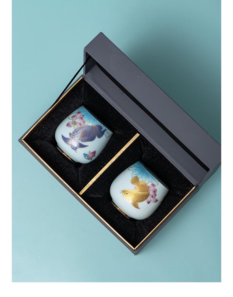 Taza par de peces dragón dorado caja de regalo taza para pareja taza de cerámica taza de té pequeña 150 ml taza maestra taza de té regalo taza individual