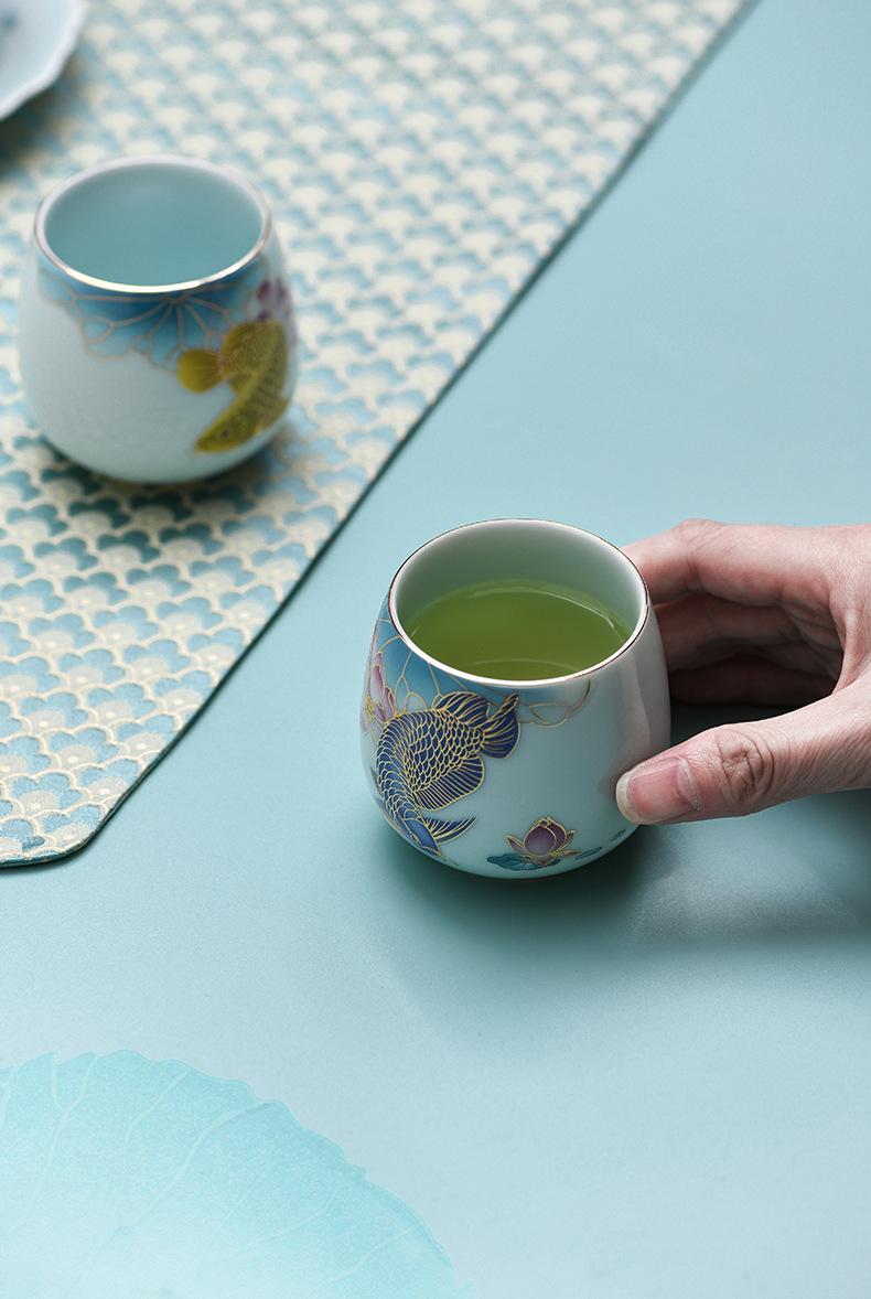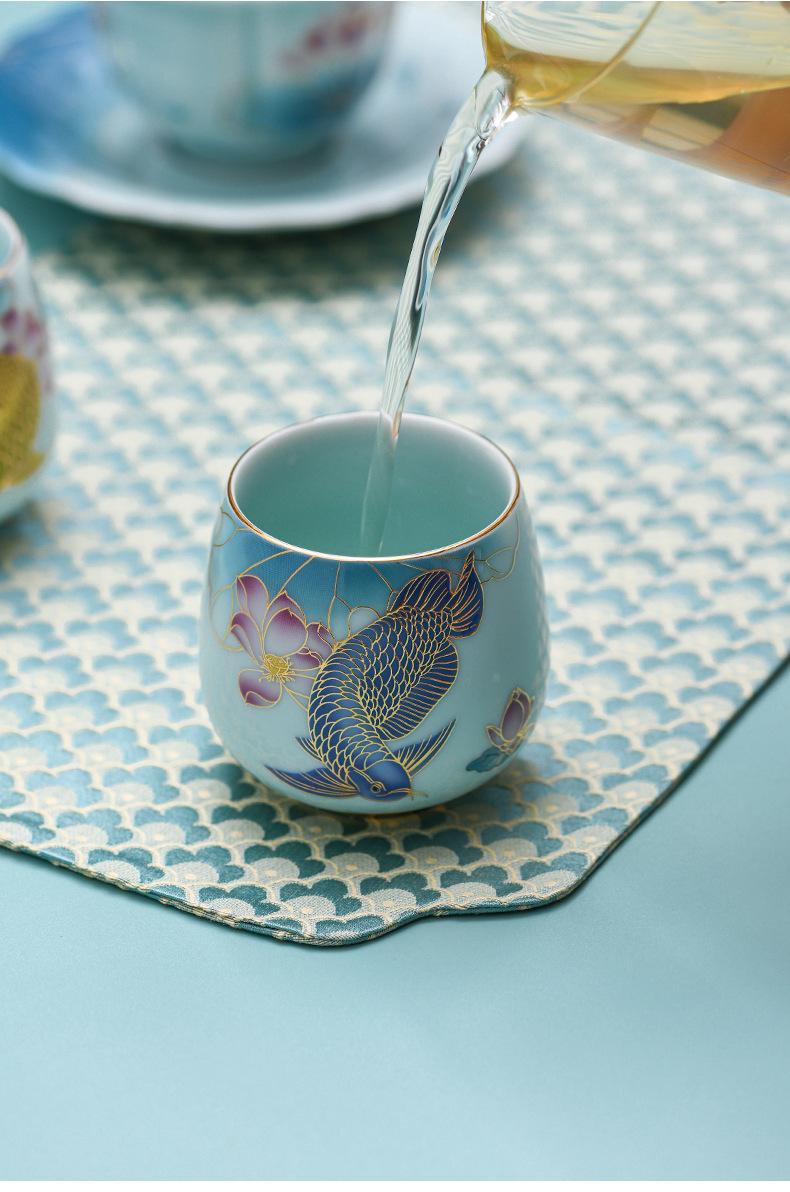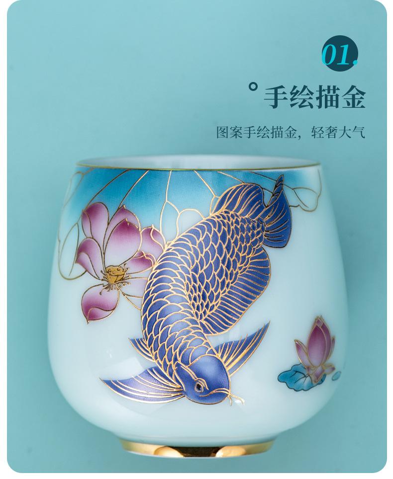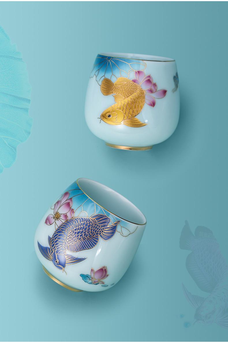 Taza par de peces dragón dorado caja de regalo taza para pareja taza de cerámica taza de té pequeña 150 ml taza maestra taza de té regalo taza individual