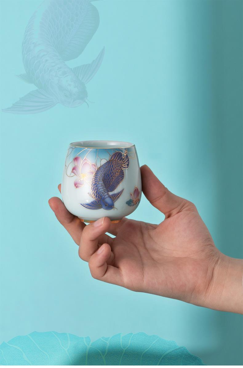 Taza Arowana Dorada Caja de Regalo Taza para Pareja Taza de Cerámica Taza de Té Pequeña 150ml Taza para Anfitrión Taza de Té Regalo Taza Individual