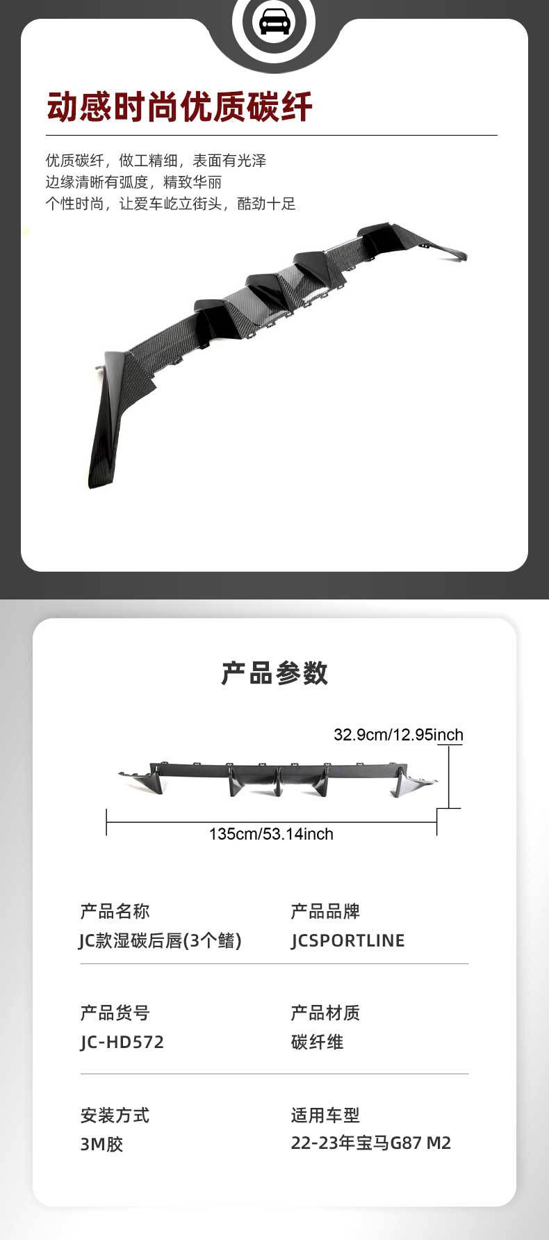 Adecuado para coche BMW 22-23 JC fibra de carbono húmeda modificación labio trasero BMW G87 M2 cupé alerón inferior trasero