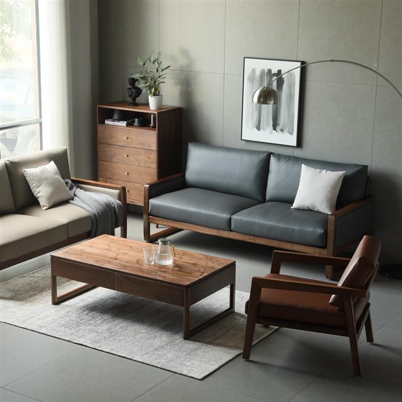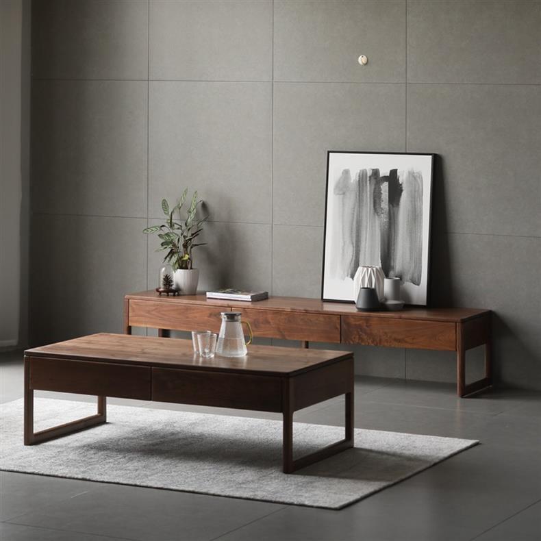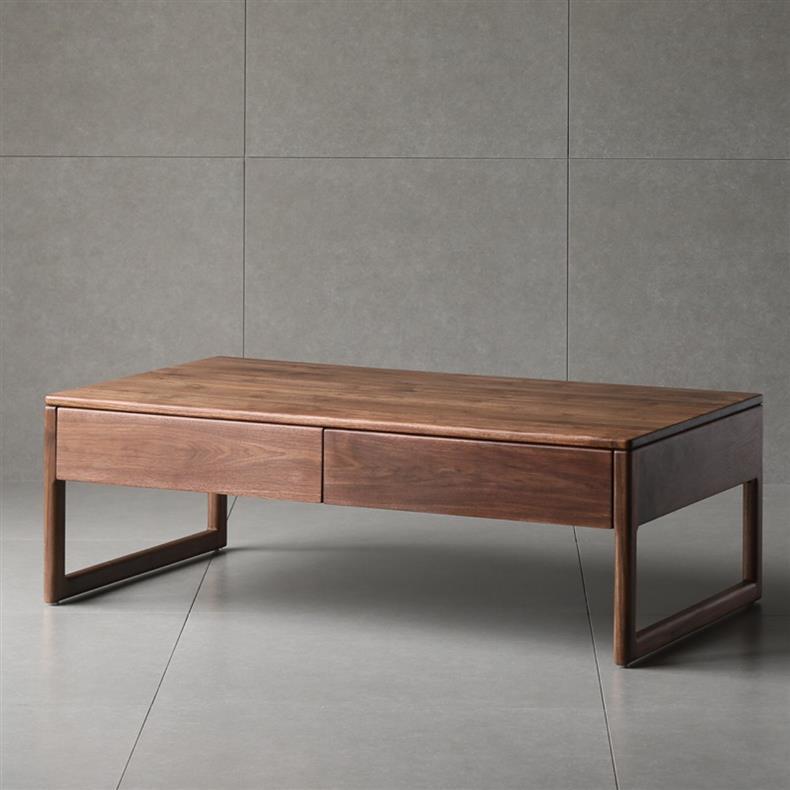 Mesa de centro nórdica sencilla de nogal negro para sala de estar, mesa de centro para el hogar, toda de madera maciza, apartamento pequeño con cajón, mesa baja moderna y minimalista