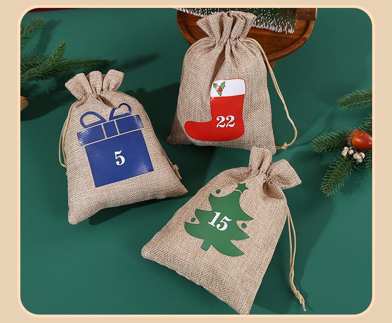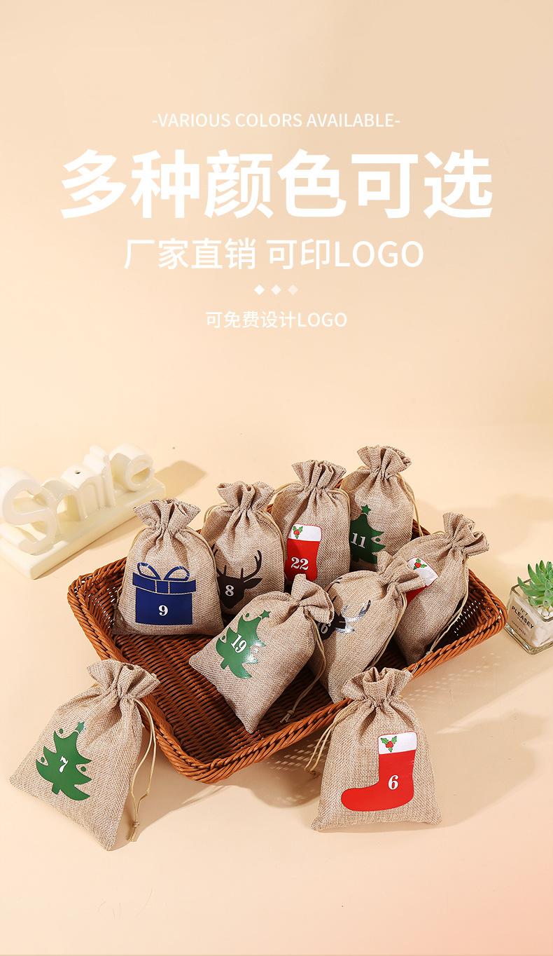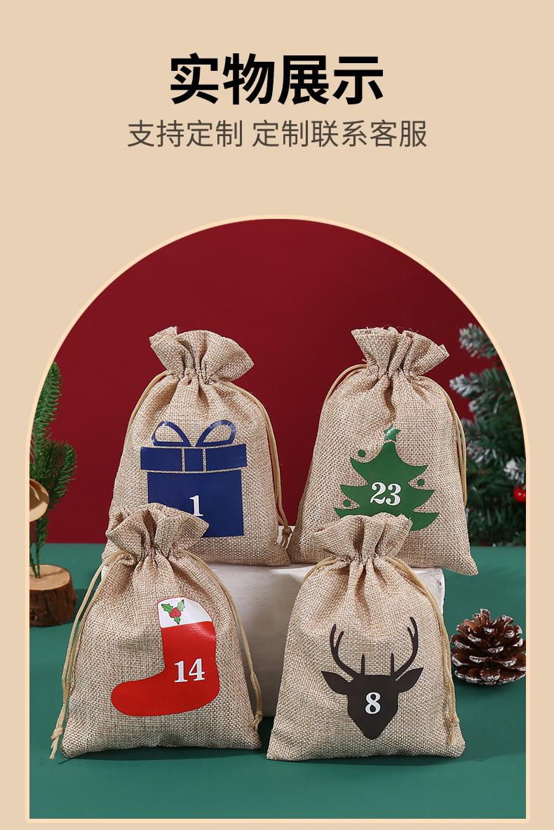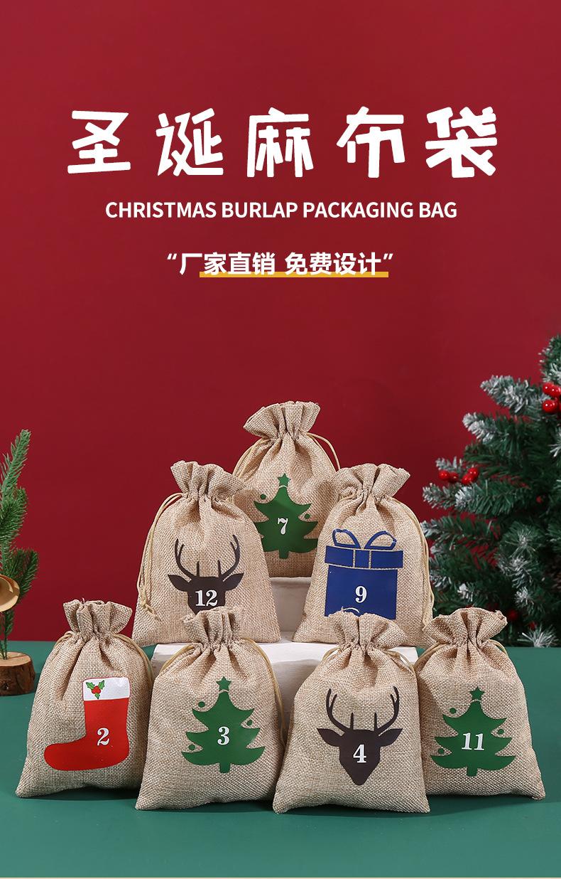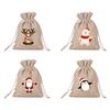 Nueva bolsa de lino con cordón y estampado de transferencia térmica navideña, bolsa de regalo navideña, bolsa de almacenamiento de juguetes y dulces para niños