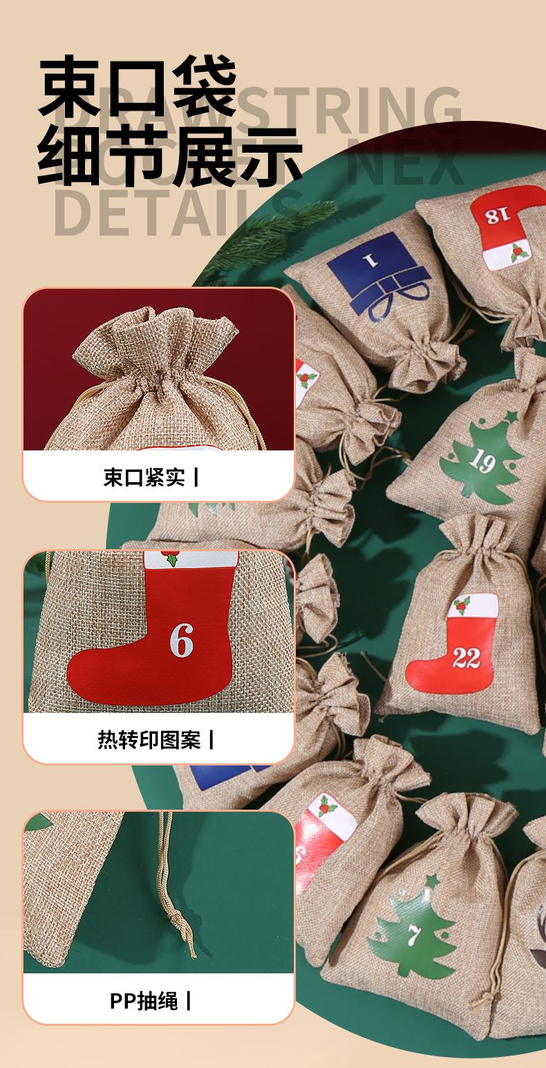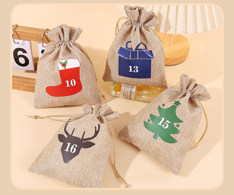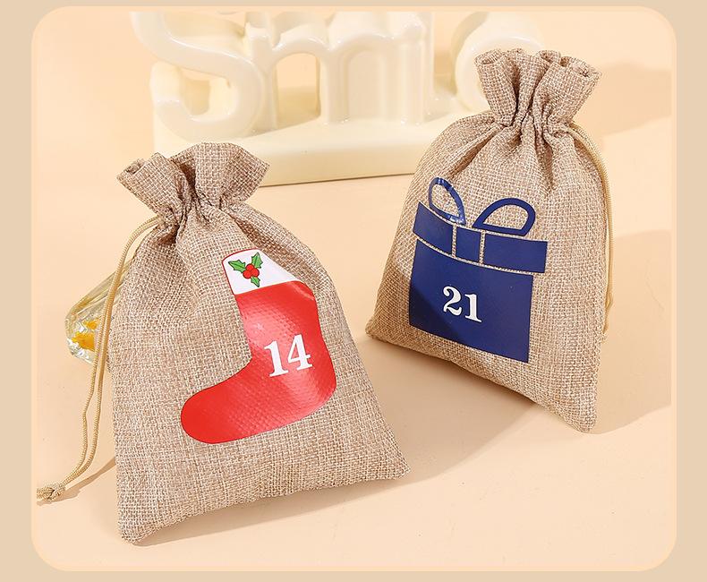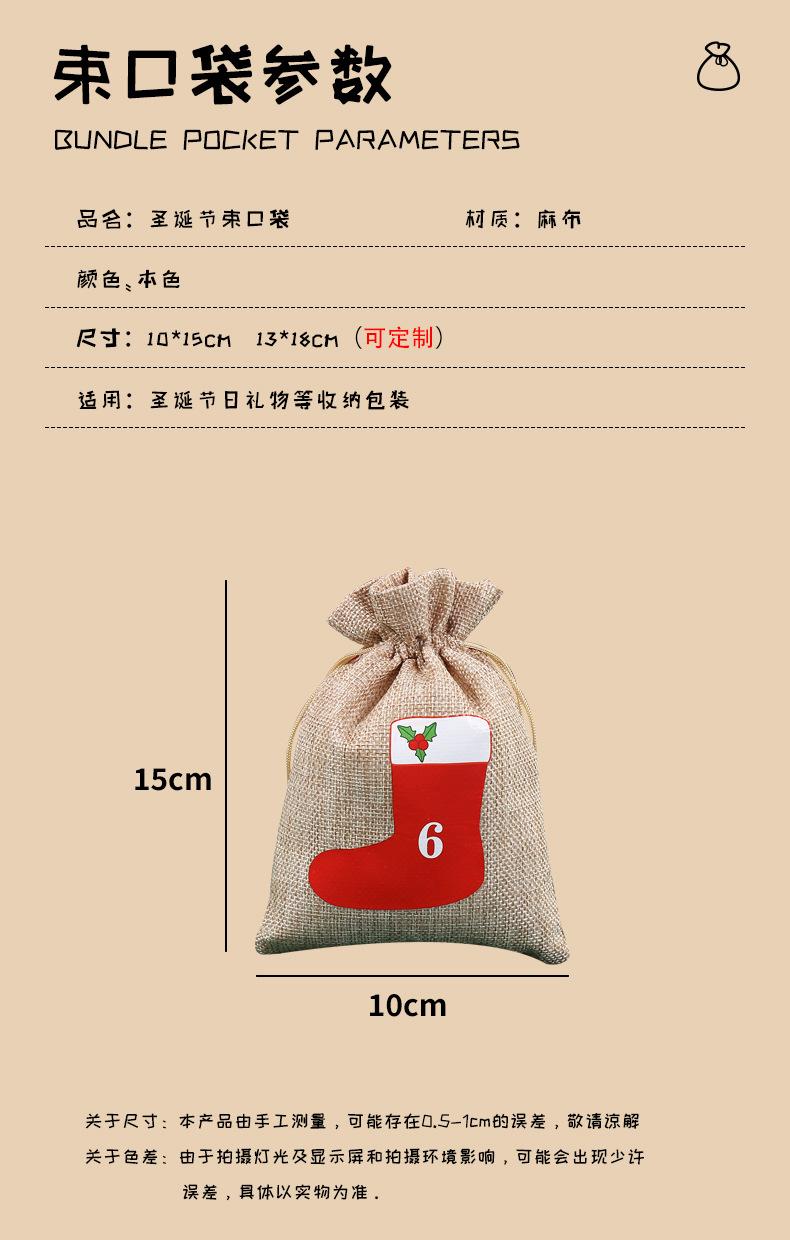 Nueva bolsa de lino con cordón y estampado de transferencia térmica navideña, bolsa de regalo navideña, bolsa de almacenamiento de juguetes y dulces para niños