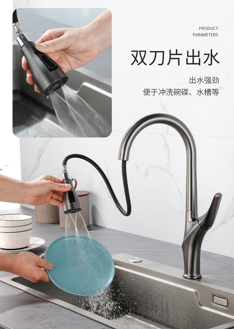 Grifo de cocina extraíble de cobre blanco grisáceo con agua fría y caliente, lavabo para verduras, comercio exterior transfronterizo
