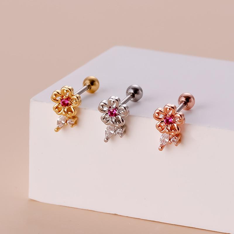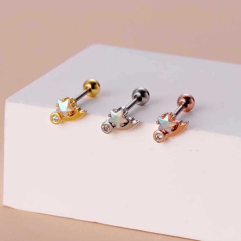 | nombre del producto | Nuevo color circonita acero inoxidable varilla delgada aretes de hueso de la oreja tornillo desmontable de doble cabeza aretes piercing de moda |