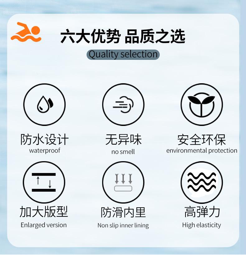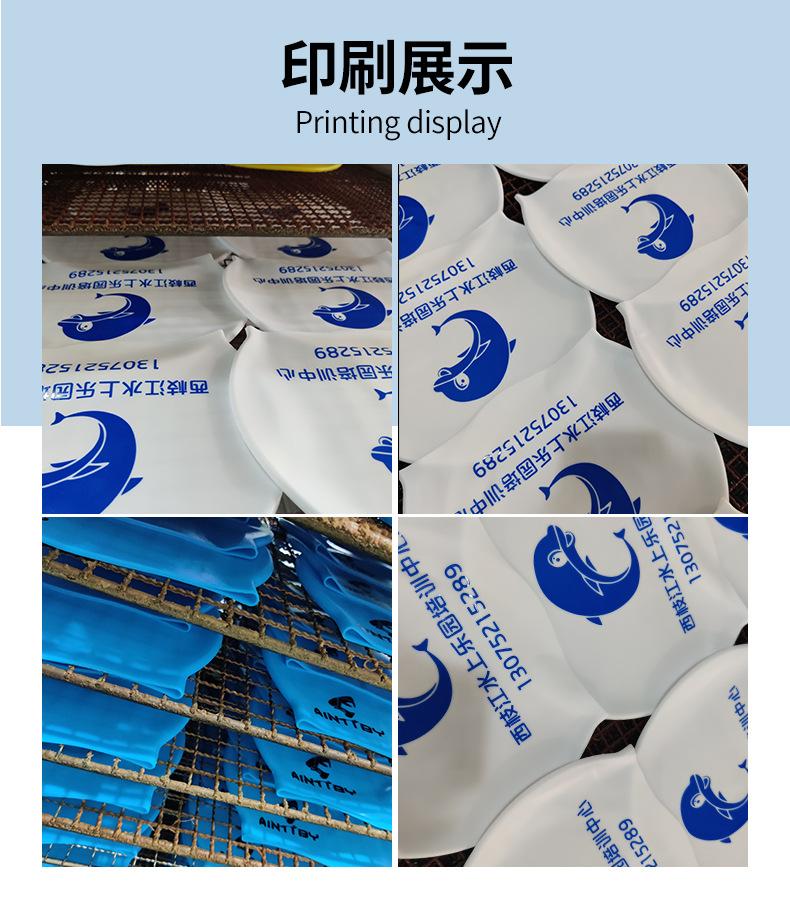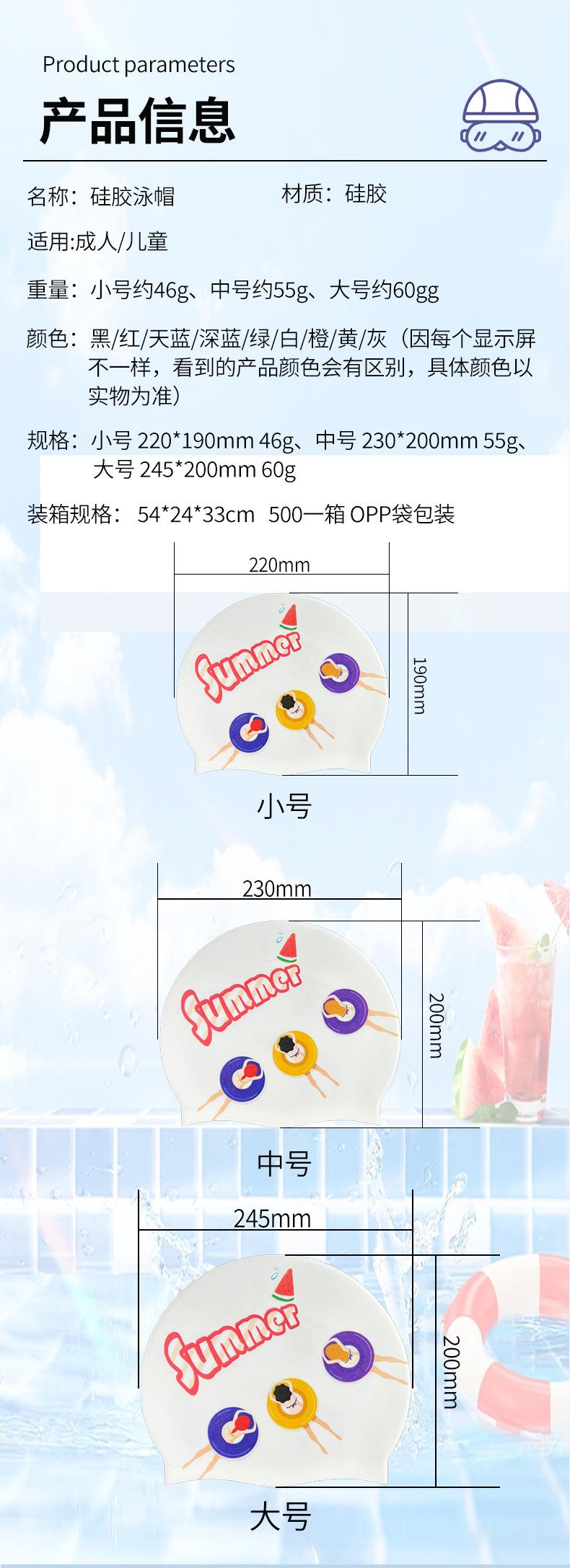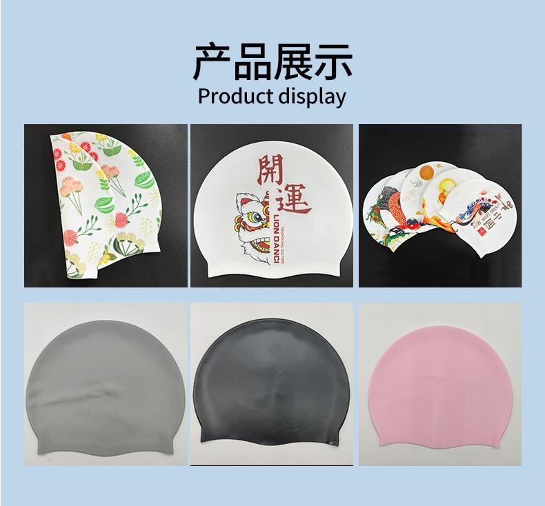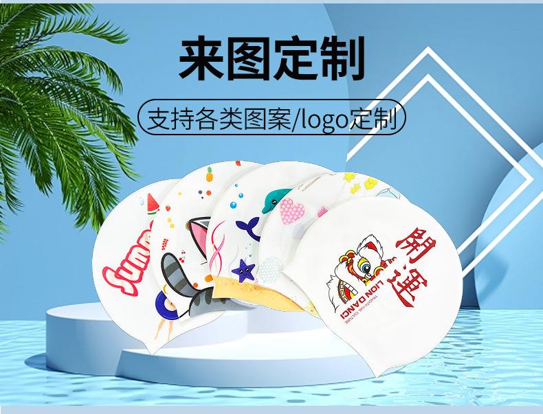 Gorro de natación de silicona unisex para adultos y niños, cómodo, con protección para los oídos, estampado, grueso, suave y muy elástico.