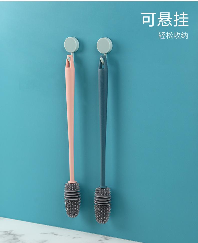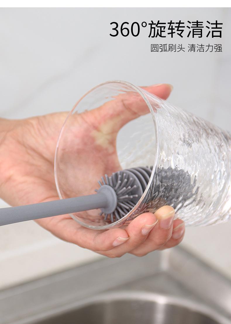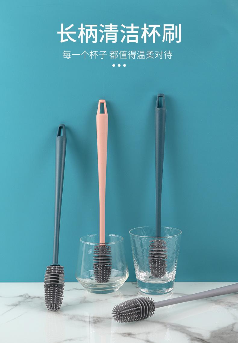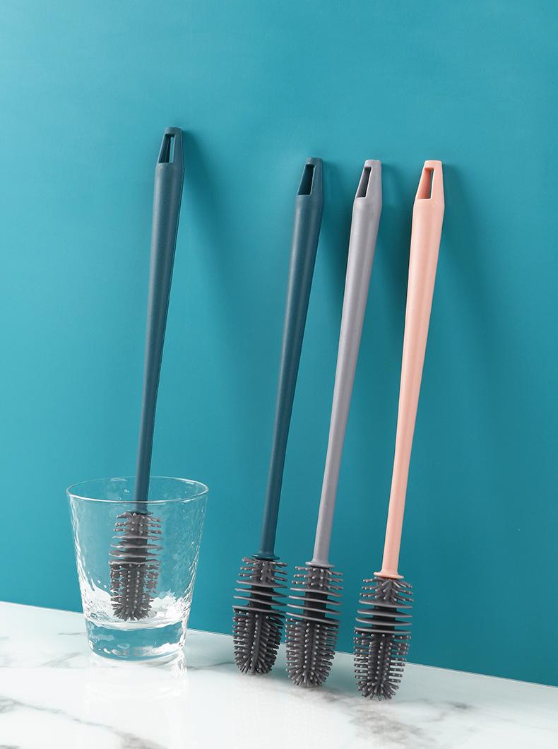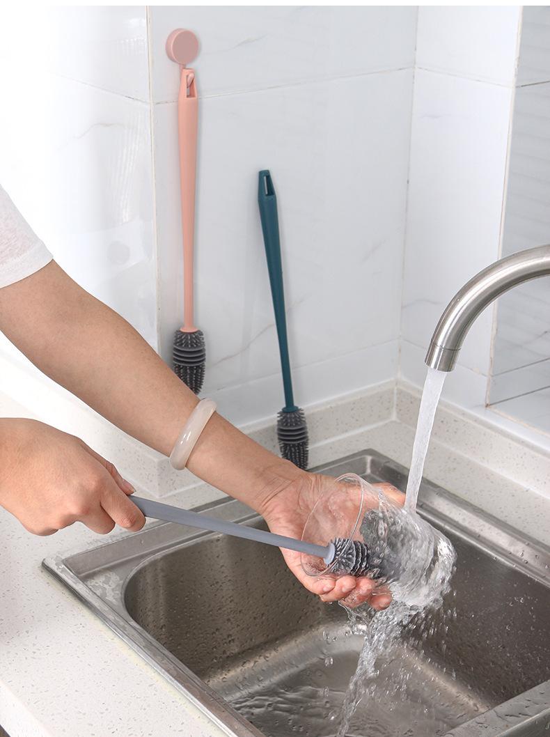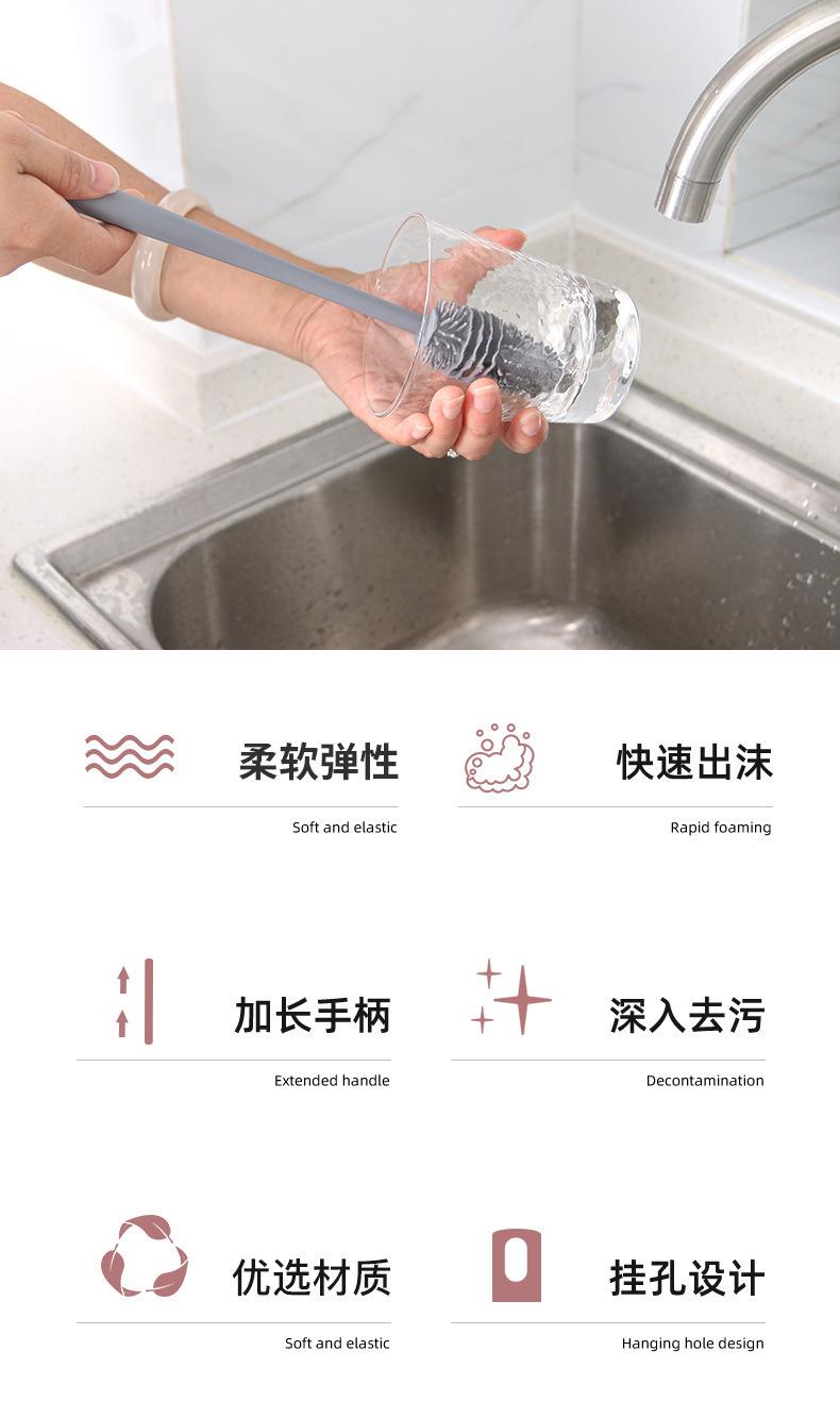 Cepillo de silicona para taza de agua, termo, para cocina, hogar, sin ángulo muerto, mango largo, para lavar botellas de leche, limpieza de manchas de té, cepillo especial.
