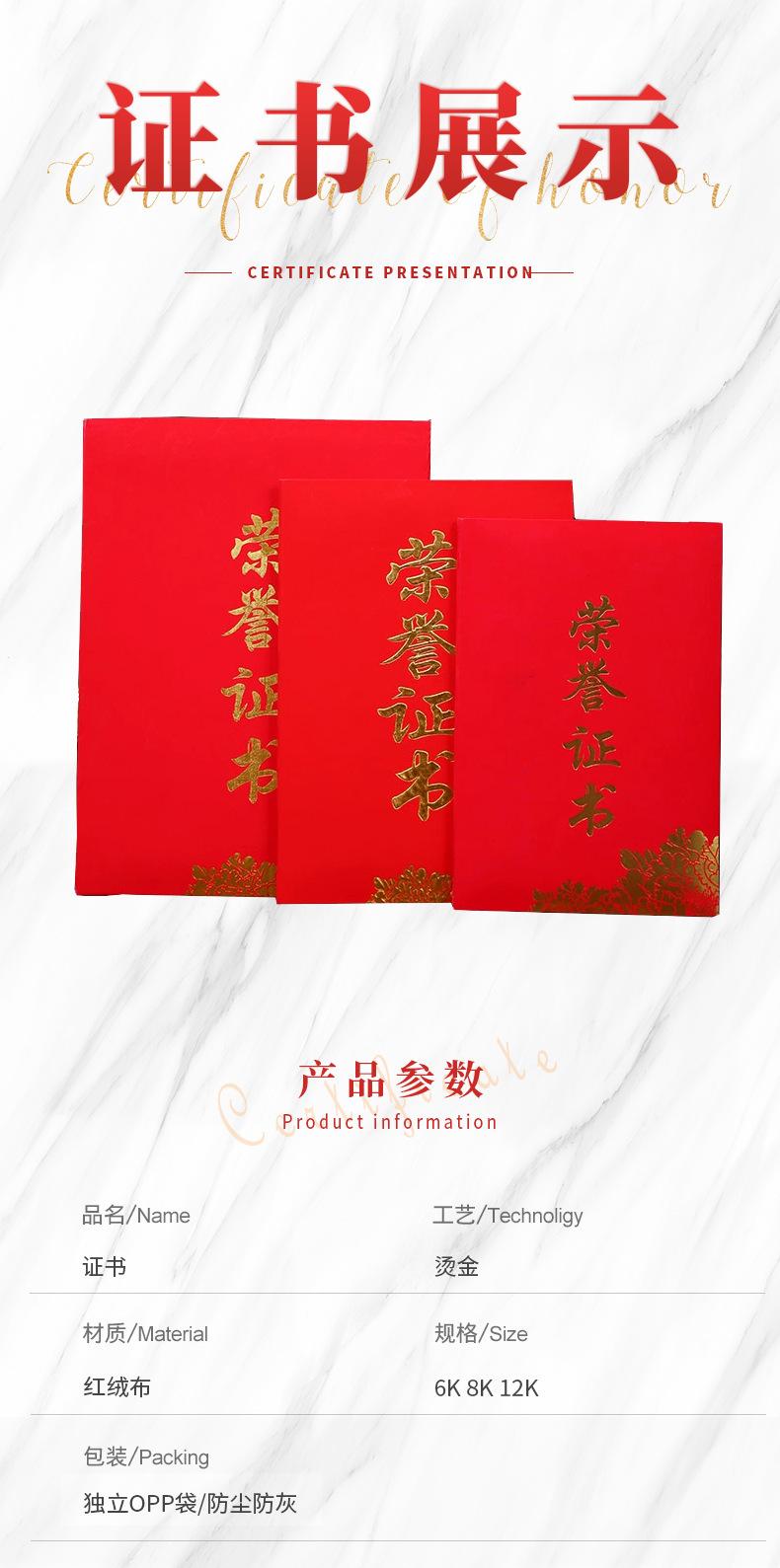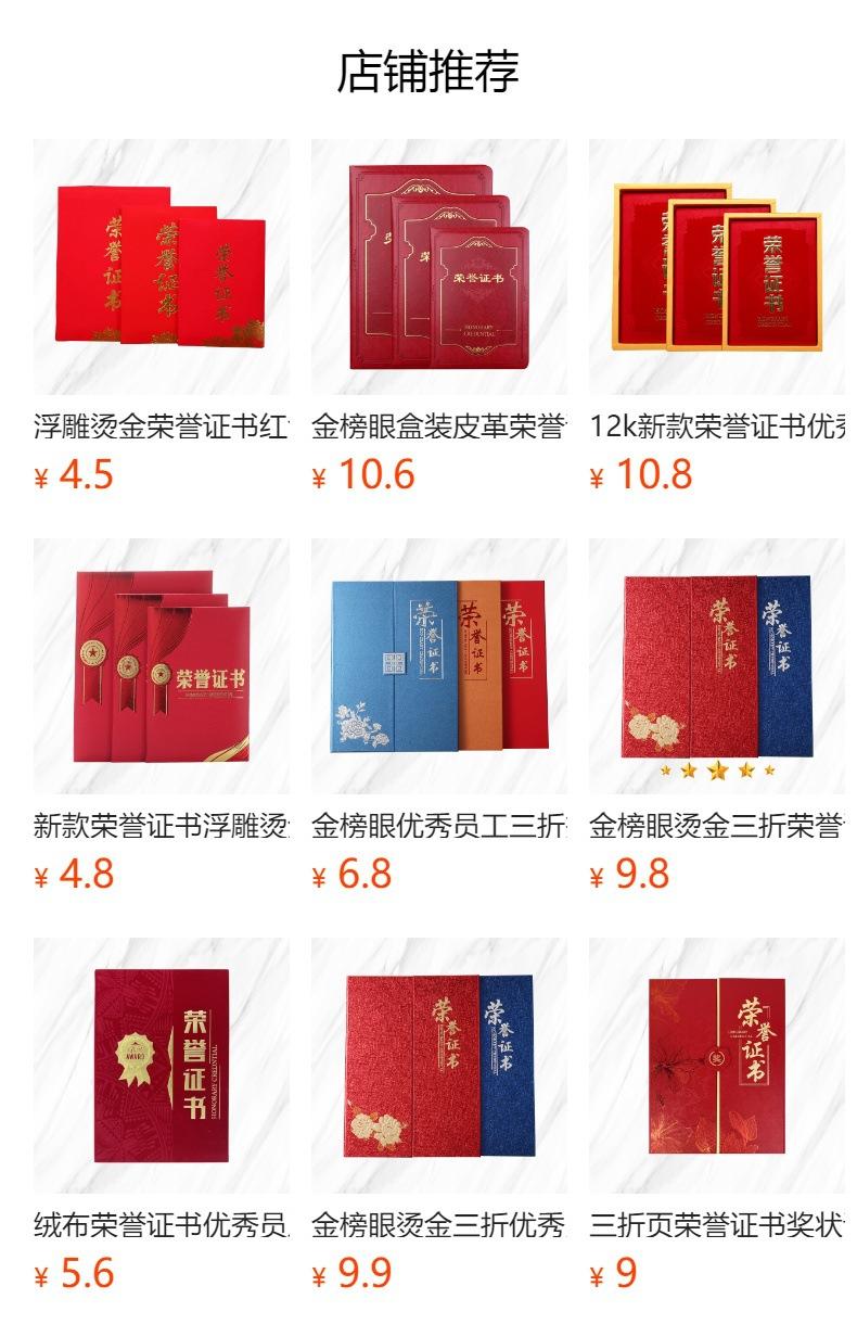 100 copies in the whole piece, unit price 5.8 yuan, honor certificate 6k (a4 inner pages a3 paper), extra large luxury model