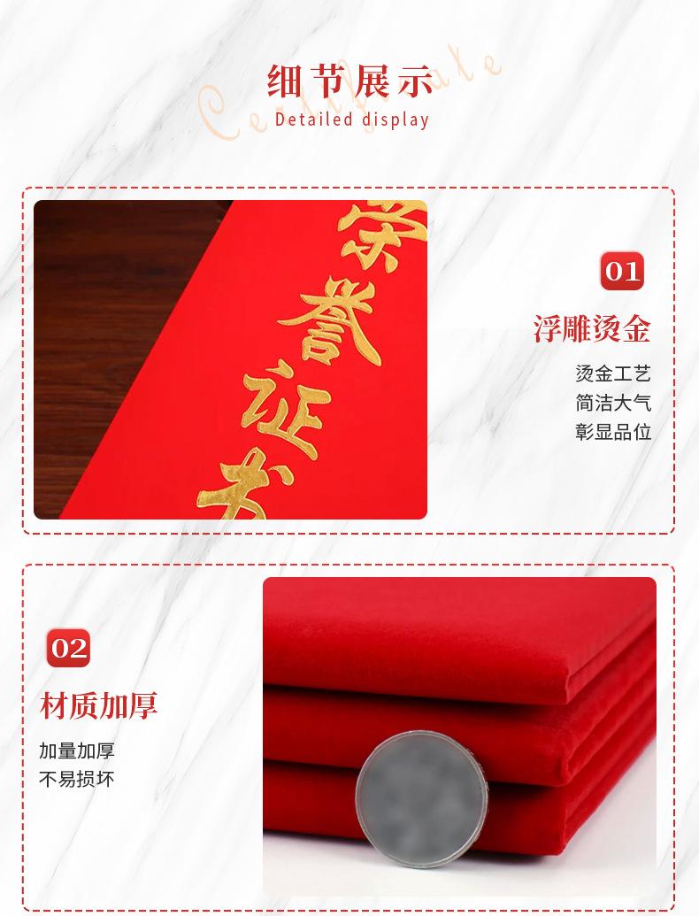 Certificado de Honor en Bronce Relieve, Bolsa con Cubierta Roja Personalizada, Impresión del Núcleo Interior, Certificado de Premio de Reunión Anual jby