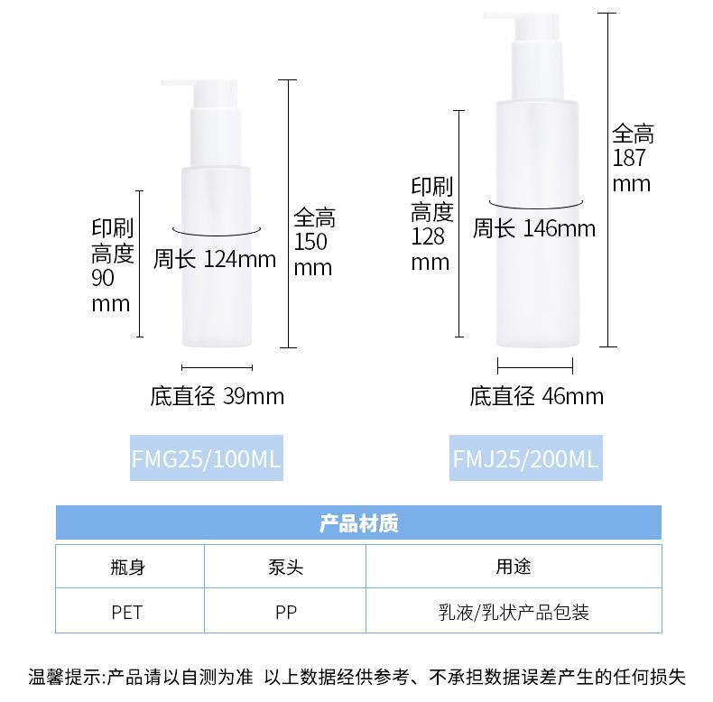 100ml; pump bottle; pet, 200ml; pressure pump bottle; pet