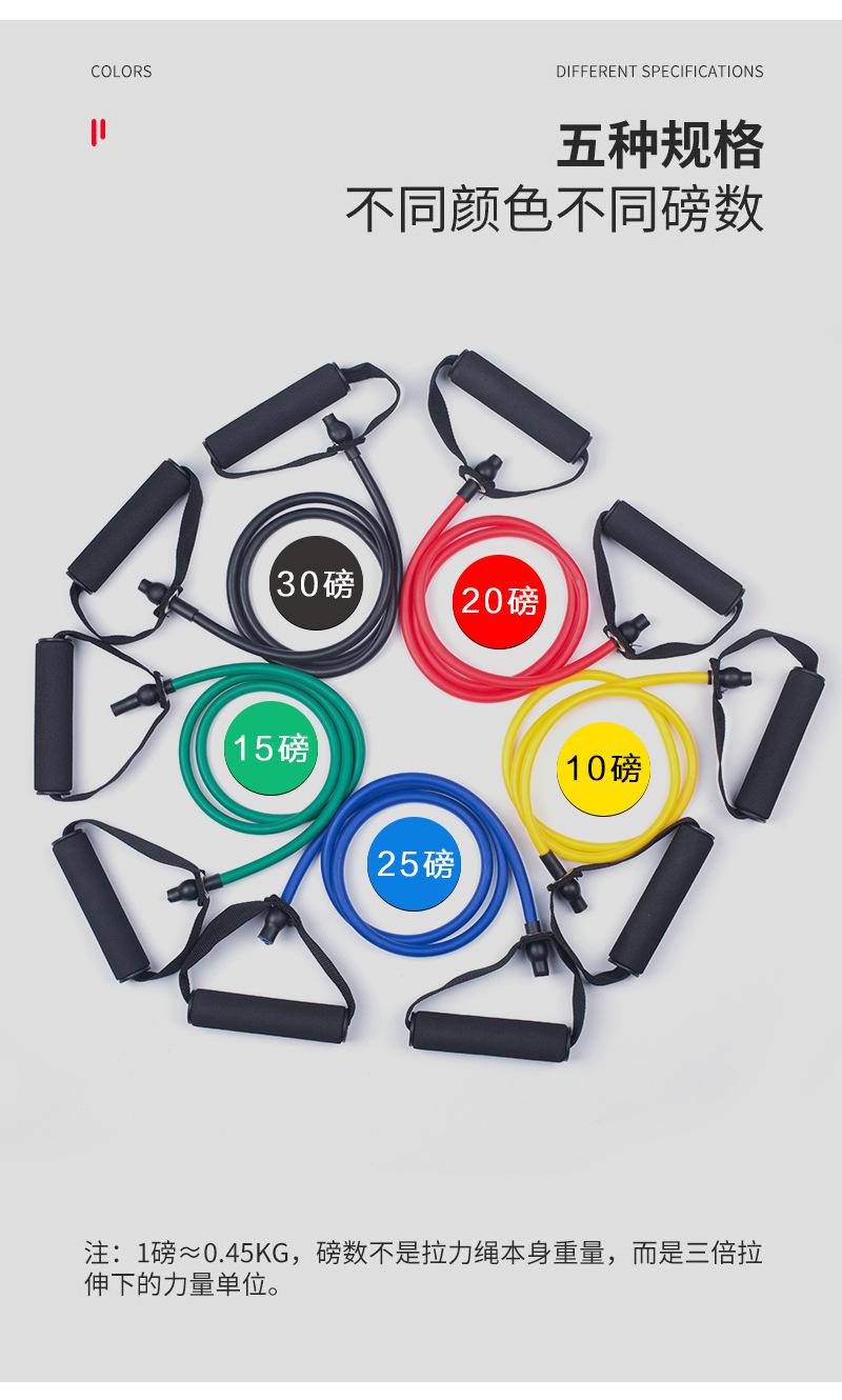 Yellow 5-8LB, Red 8-13LB, Green 13-18LB, Blue 18-23LB, Black 23-28LB