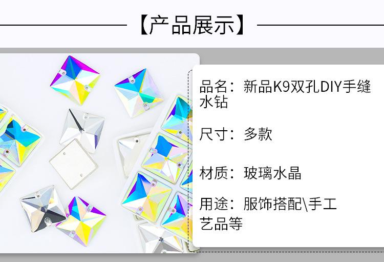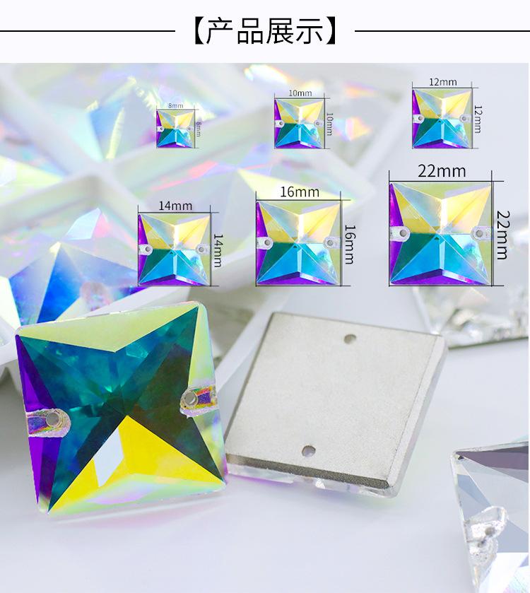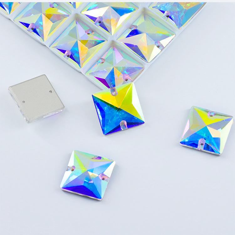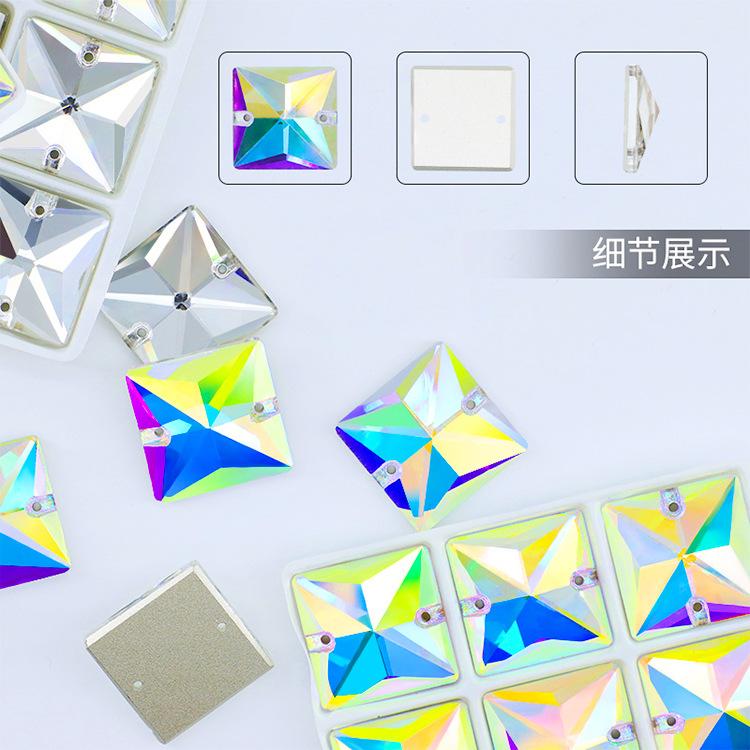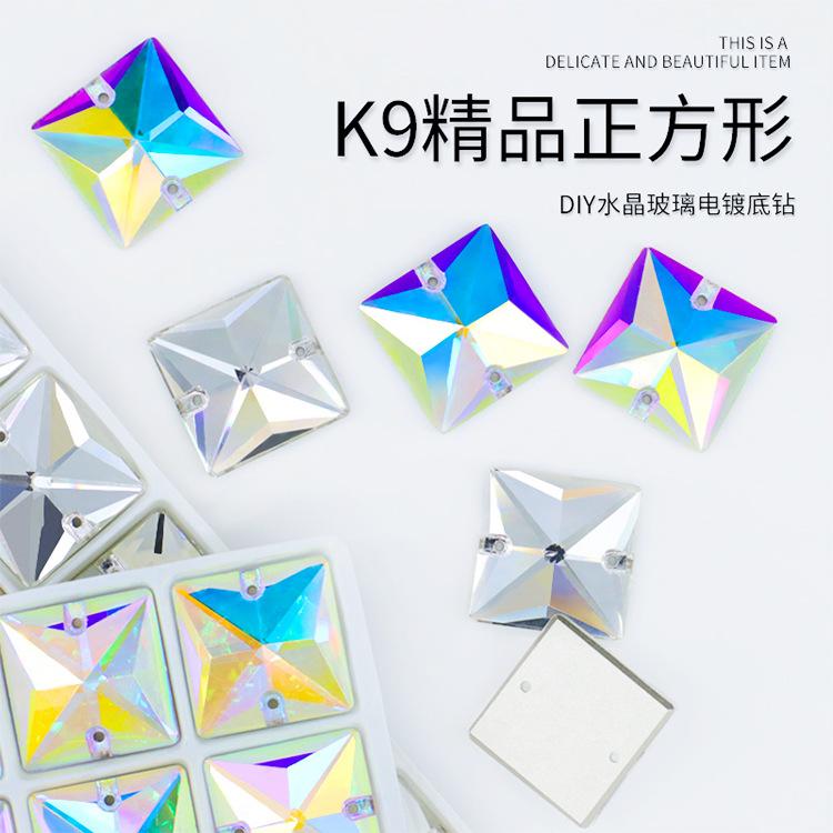 Taladro cuadrado de alta calidad con fondo plano, cosido a mano, cristal K9, hebilla plana, diamante cuadrado, accesorios de ropa para bricolaje, accesorios de boda