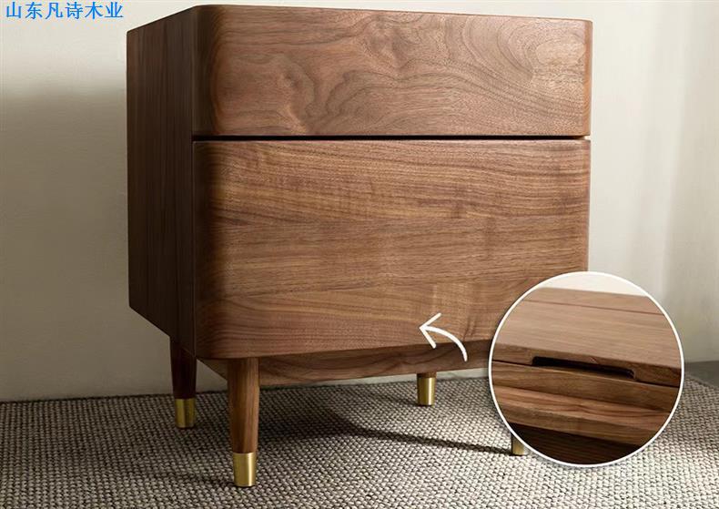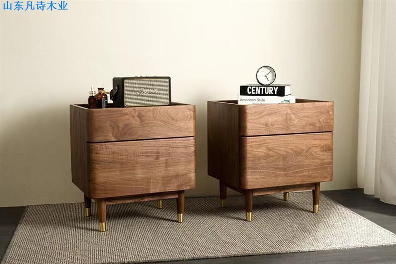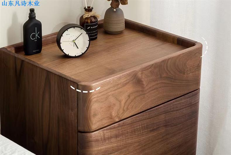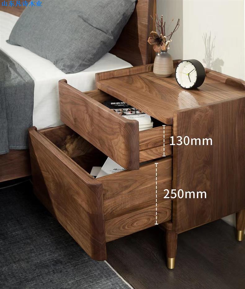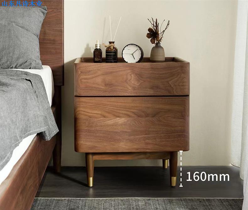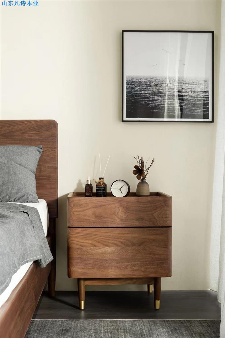 Mesita de noche de madera de cerezo nórdico, moderna y minimalista, para dormitorio, de madera maciza de nogal negro, con almacenamiento antivuelco