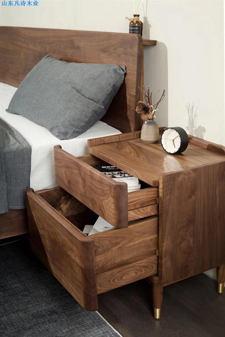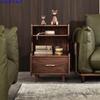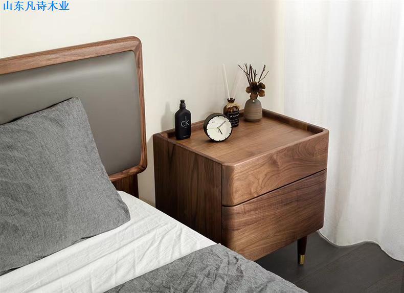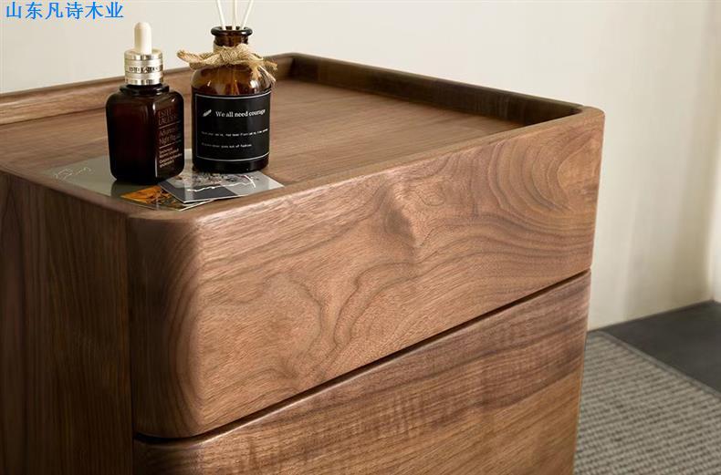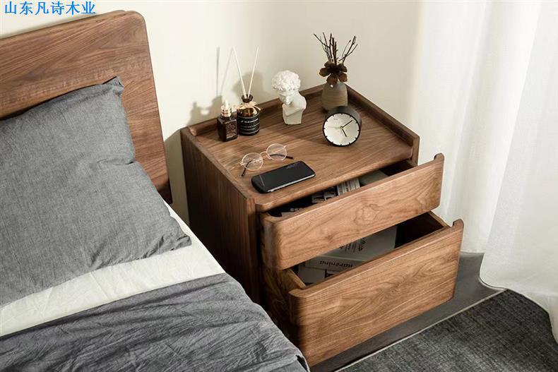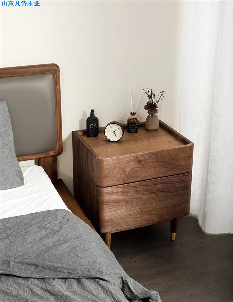 Mesita de noche de madera de cerezo nórdico, moderna y minimalista, para dormitorio, de madera maciza de nogal negro, con almacenamiento antivuelco