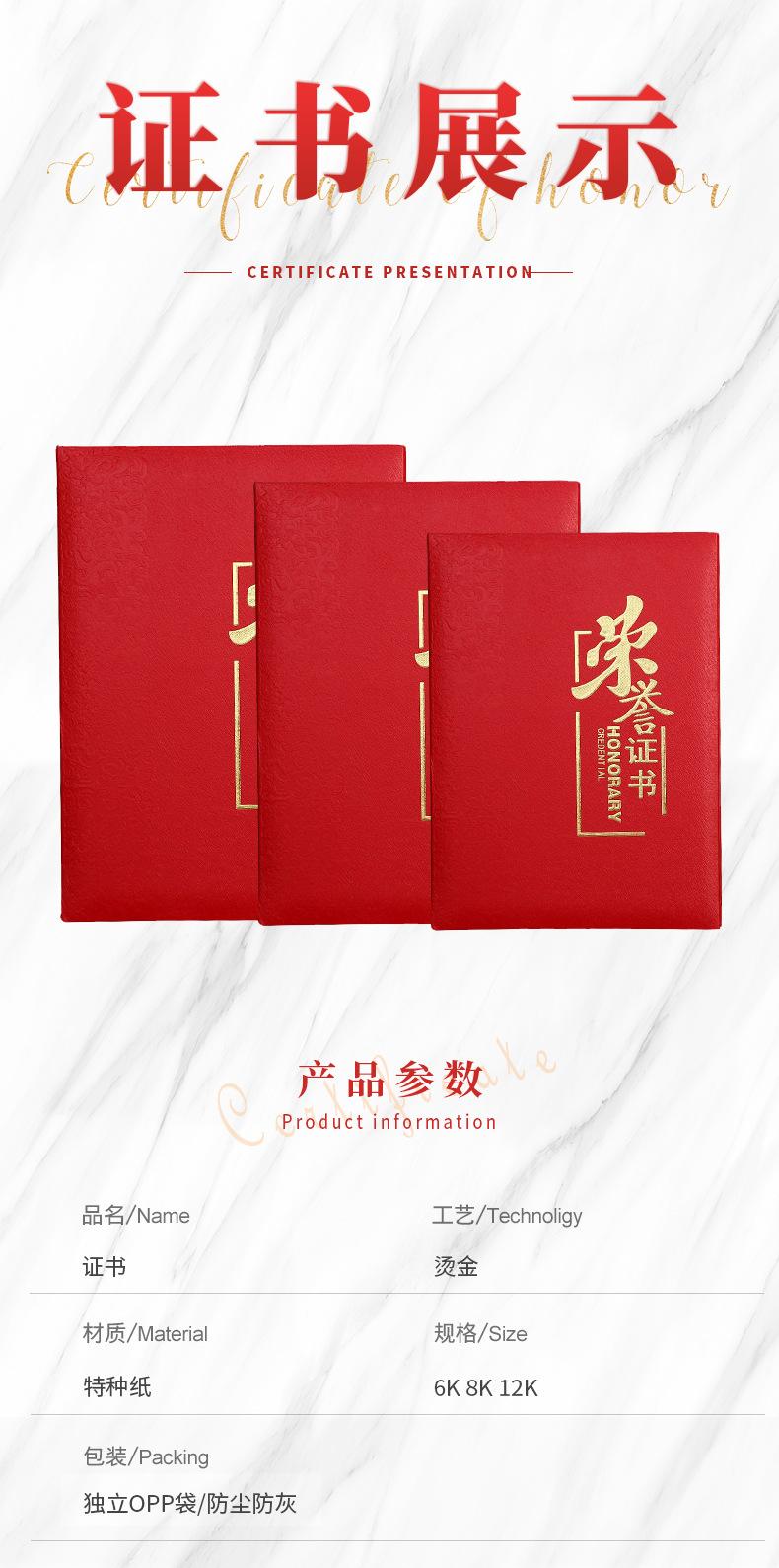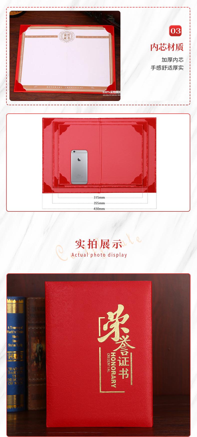 Honor certificate 12k (cover 15*23cm, inner page standard a4 paper 21*29.5cm) for easy printing, Honor certifi...