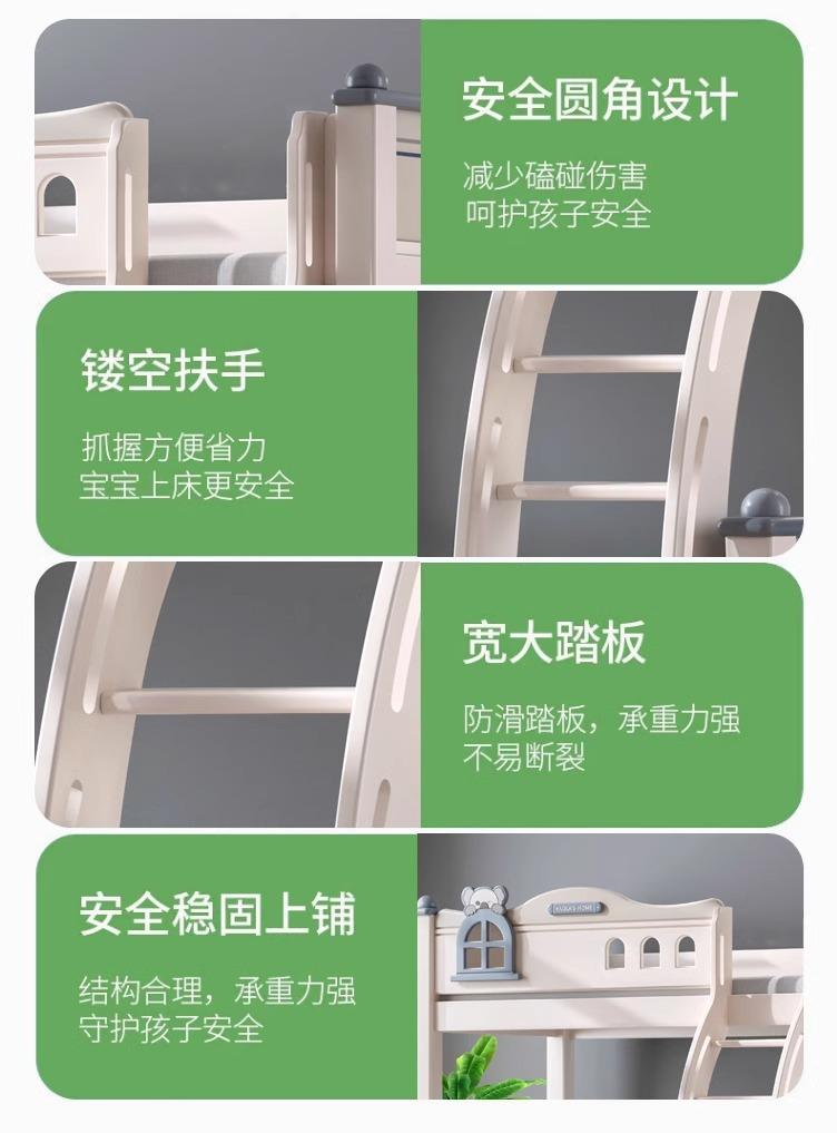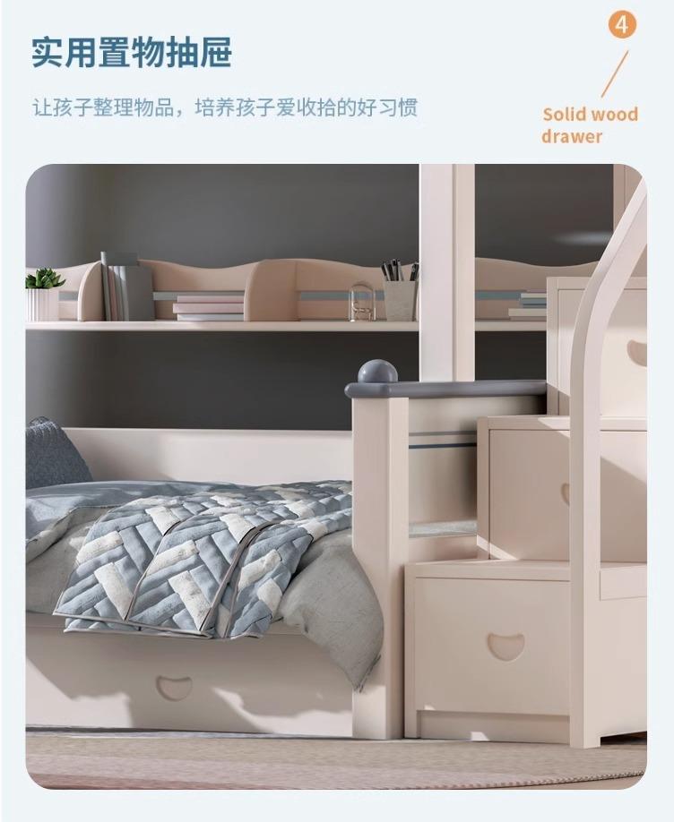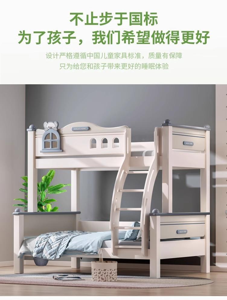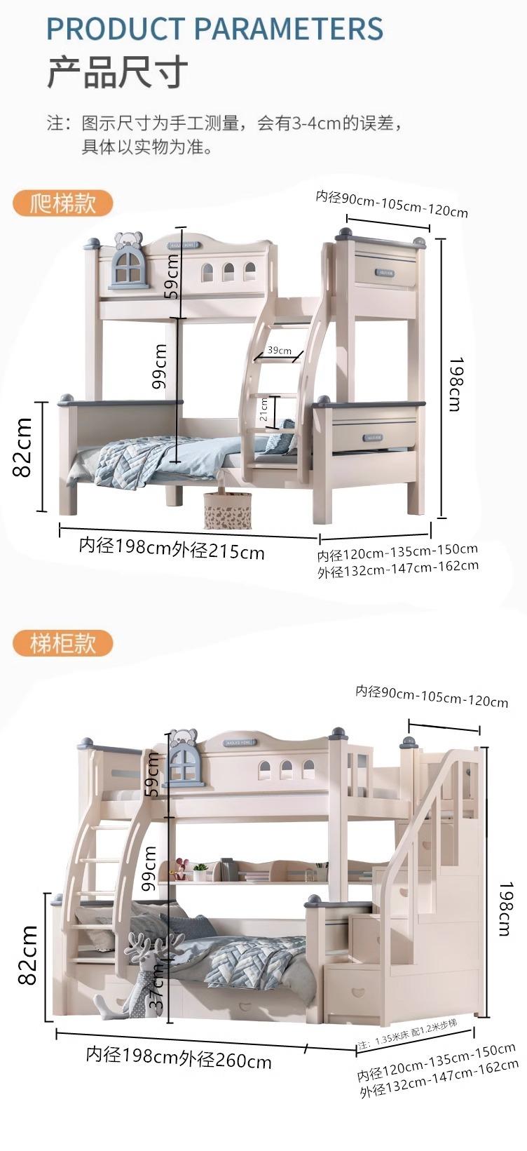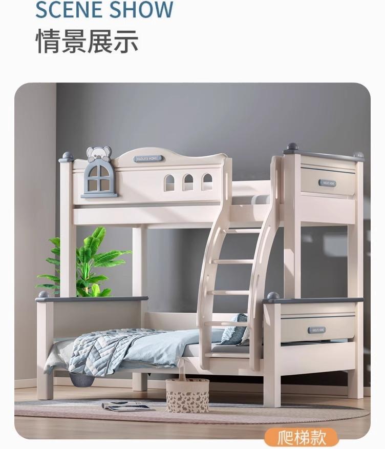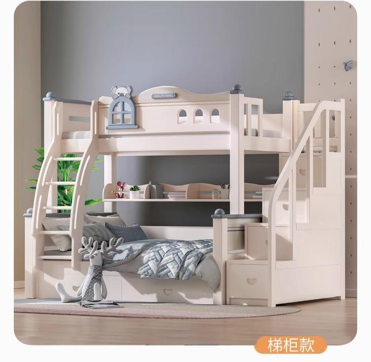 Litera de madera maciza blanca, cama alta y baja, litera sencilla, apartamento pequeño, cama infantil, litera multifuncional