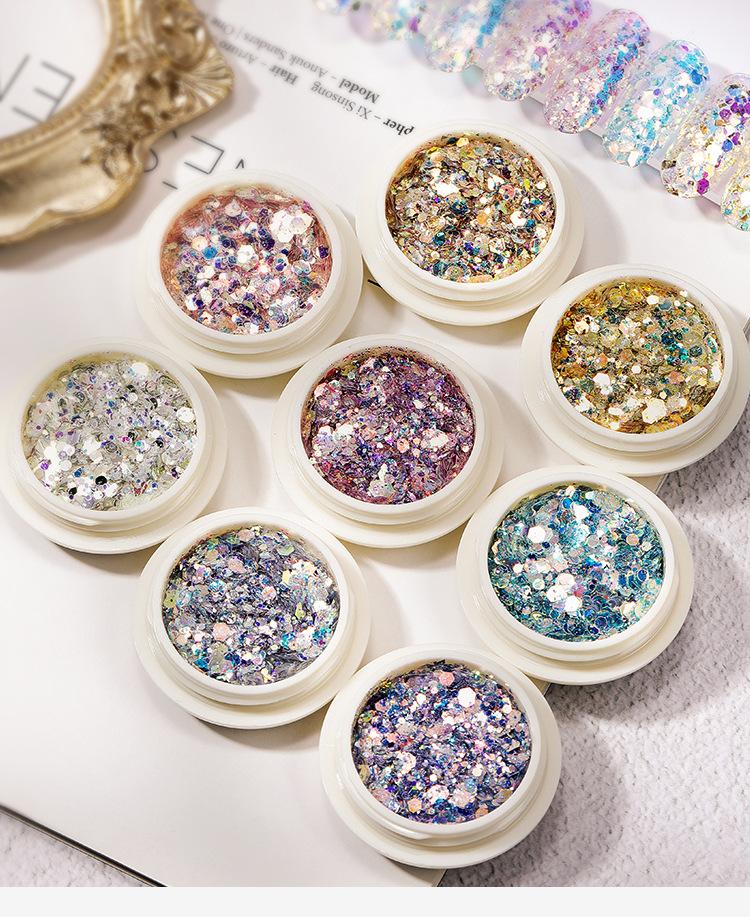 Fairy Eyes Glitter 2025 Nuevo Arte de Uñas Degradado Flash Tamaños Mixtos Fototerapia Cristal Extensión Decoraciones de Uñas Brillantes