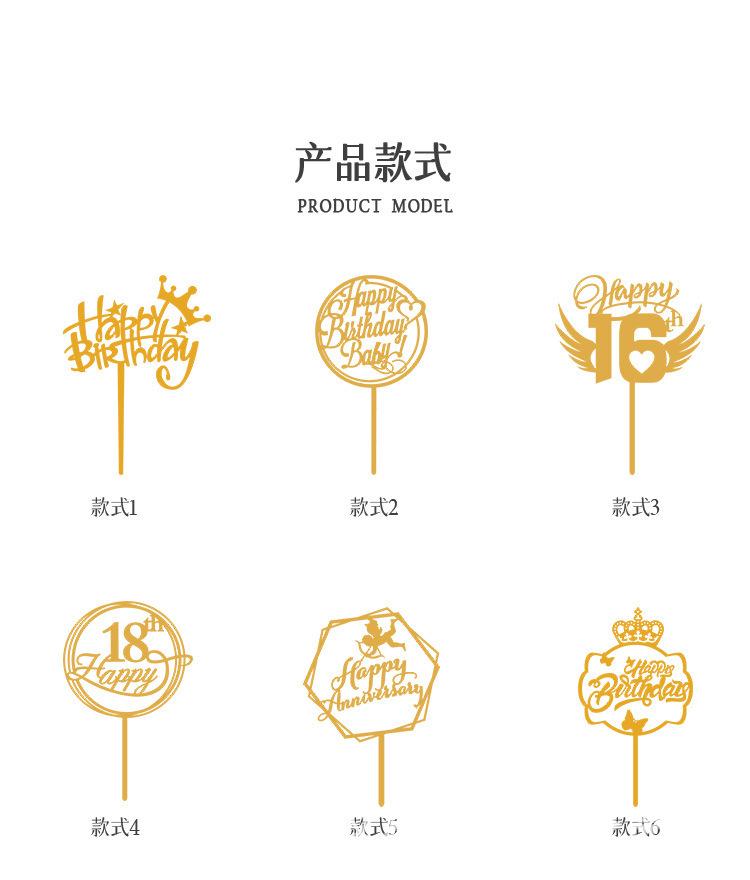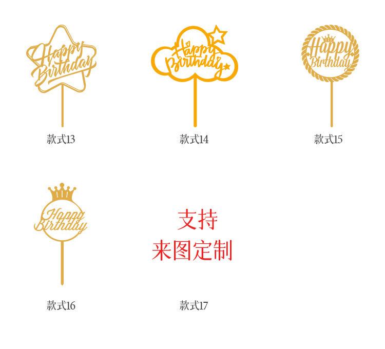 Caliente Acrílico de un Solo Color Horneado Feliz Cumpleaños Decoración para Pastel de Fiesta Inserto Adornos para Pastel Horneado