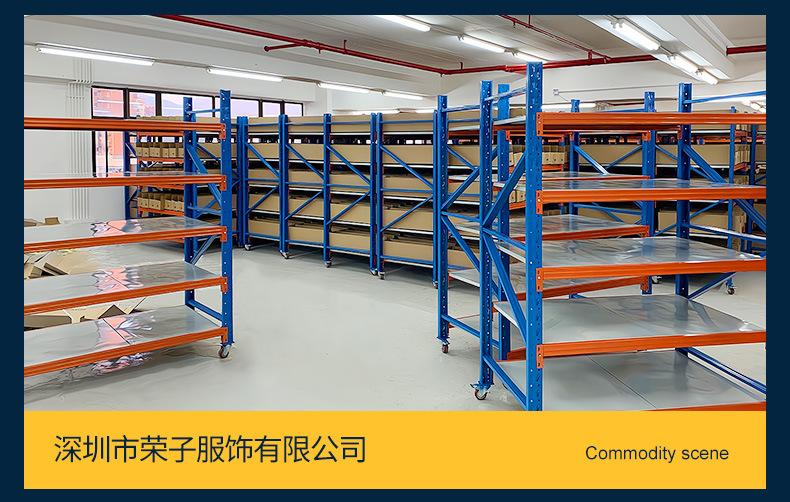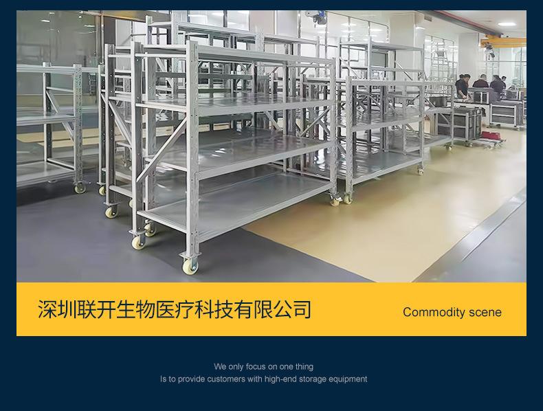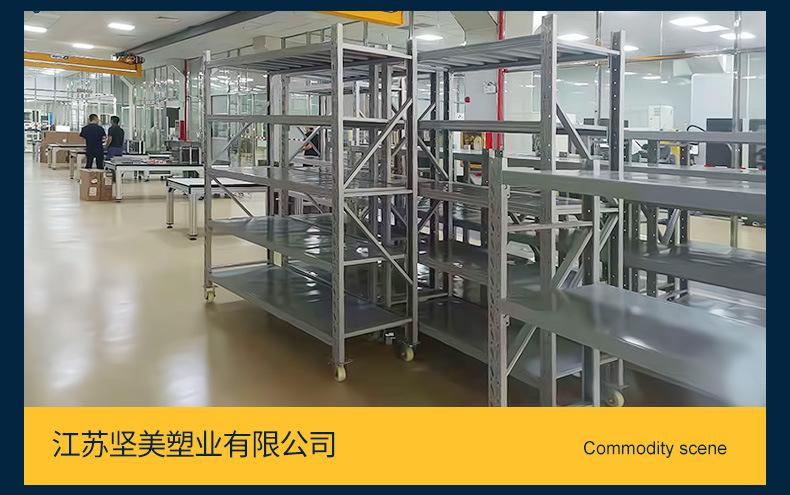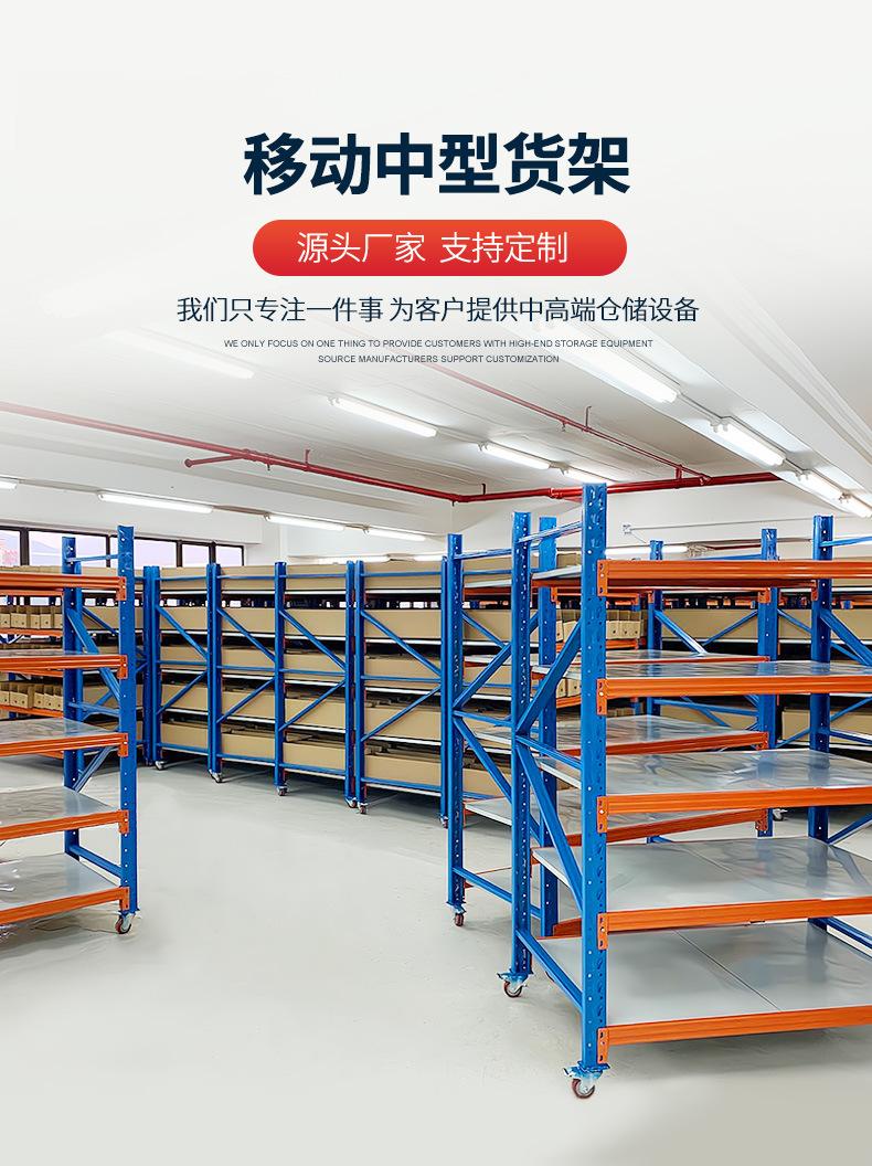 Los fabricantes suministran estantes pesados de tamaño mediano con ruedas, estantes móviles para almacenamiento de hardware, estantes móviles multicapa para el hogar.