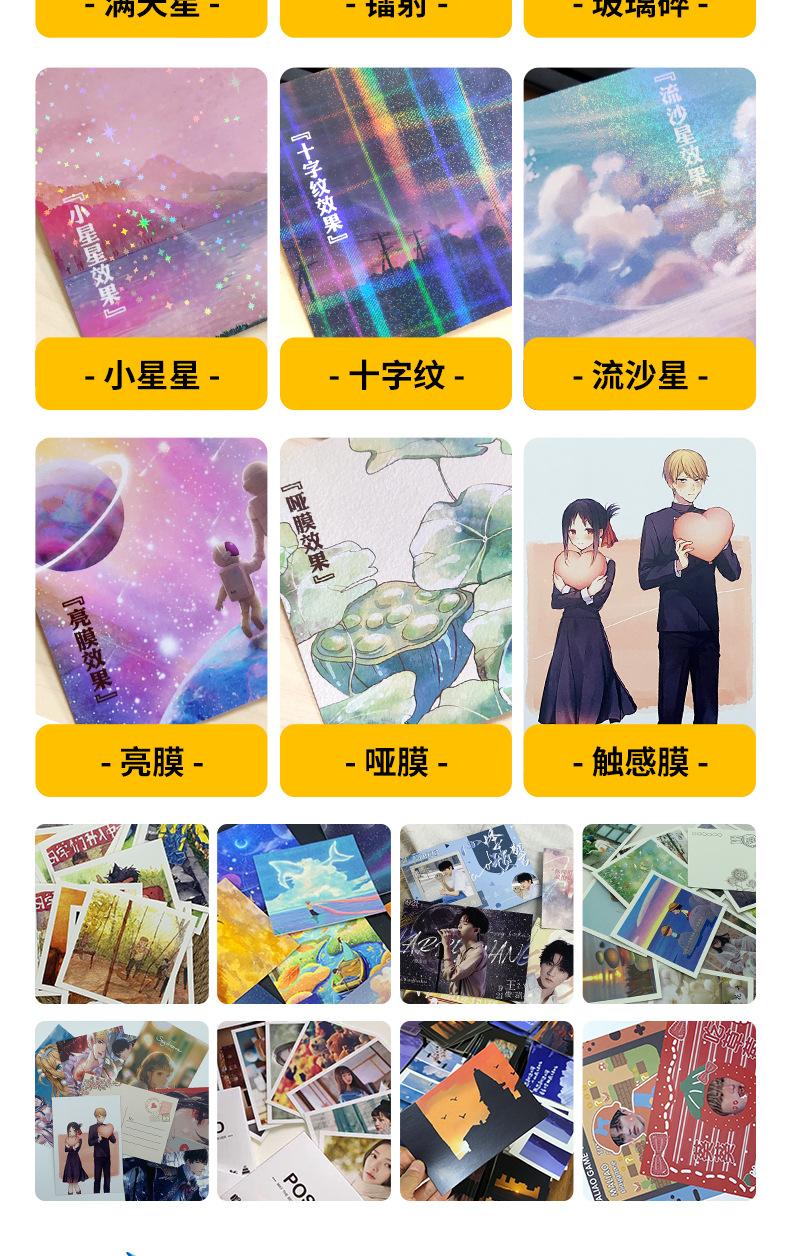 Tarjeta Cuadrada Pequeña Autoprint Personalizada Tarjeta Postal de Apoyo a Celebridad Periférico de Animación Láser Cielo Estrellado Perlado Tarjeta Cuadrada