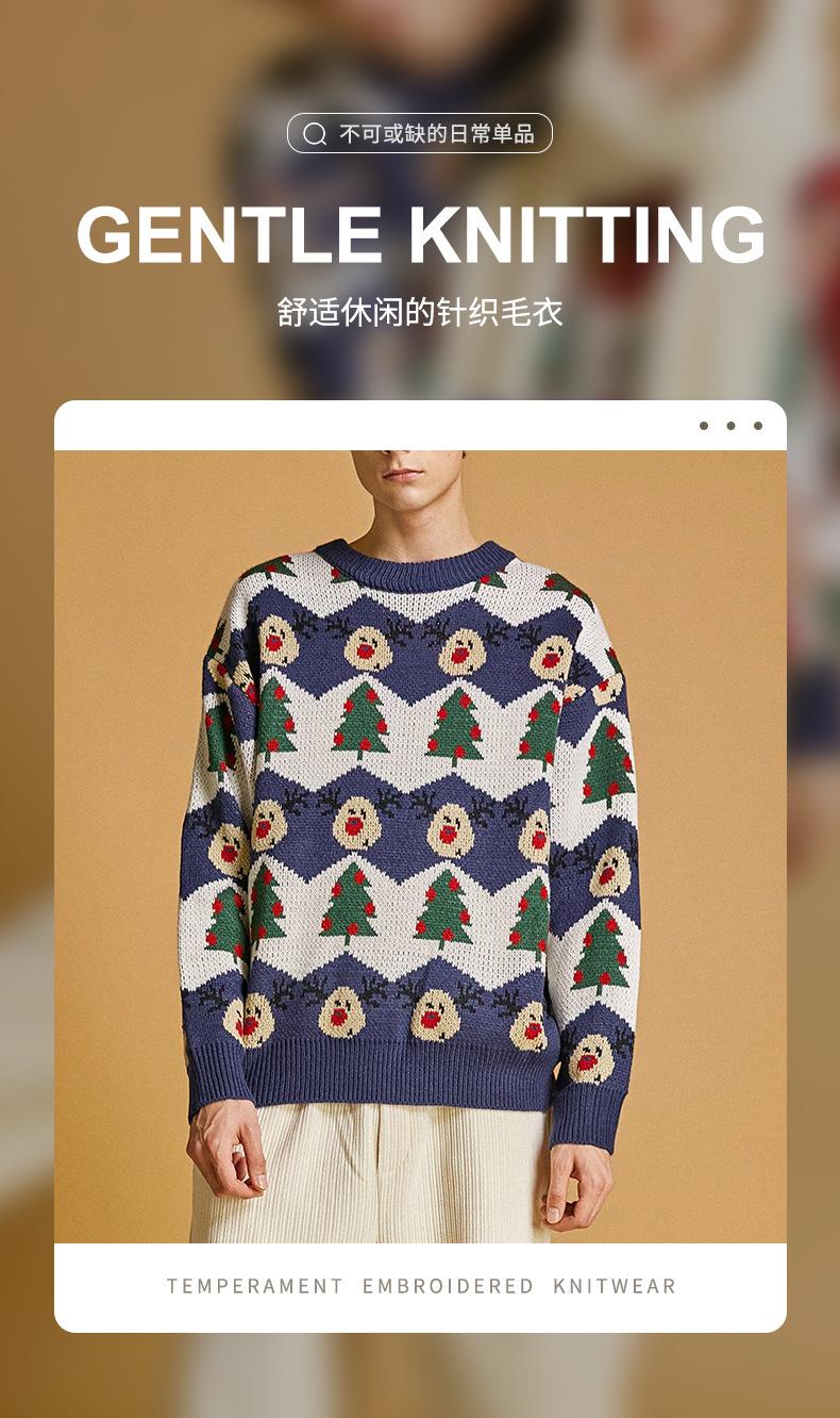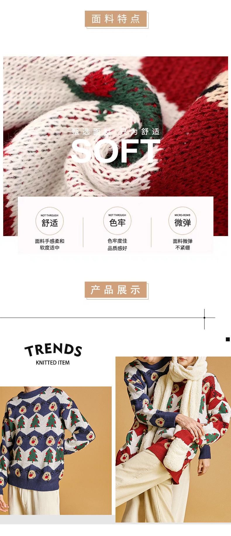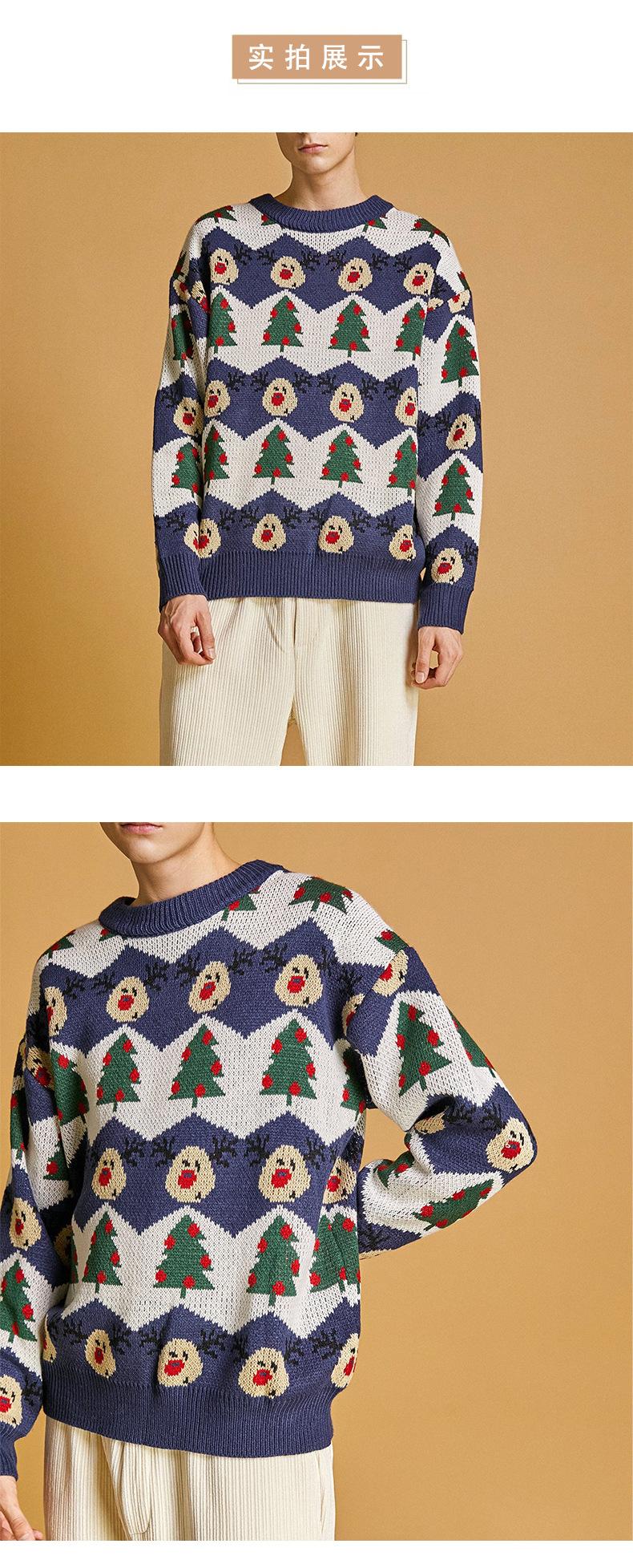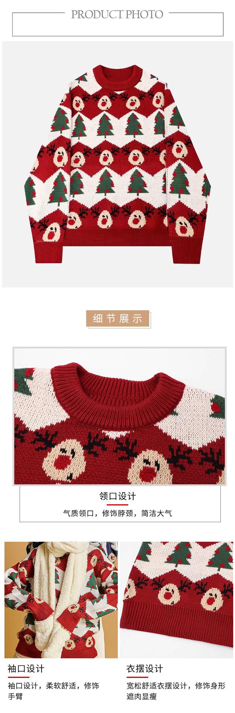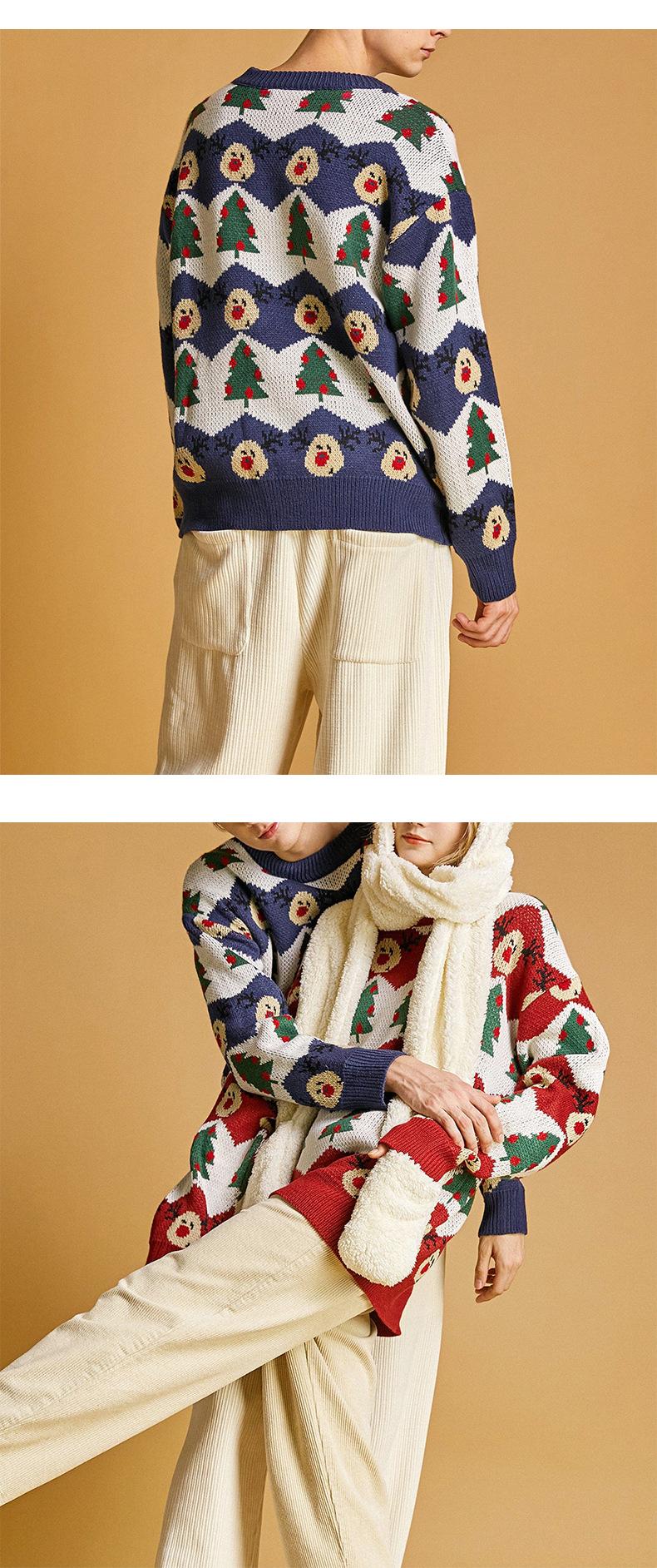 Suéter Navideño de Punto de Cuello Redondo de Otoño e Invierno Jacquard Personalizado Suéter Holgado para Pareja Procesamiento de Suéter Dalang Navideño