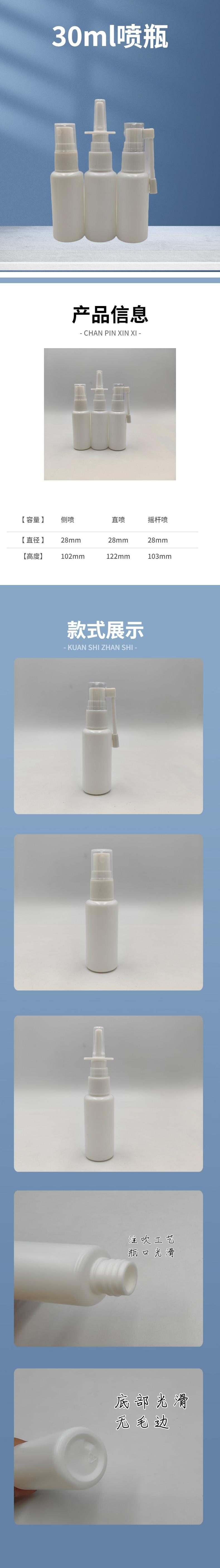 Botella de plástico con pulverizador blanco de 30 ml, pulverizador nasal, pulverizador oral, pulverizador lateral, inyección directa de 30 ml.