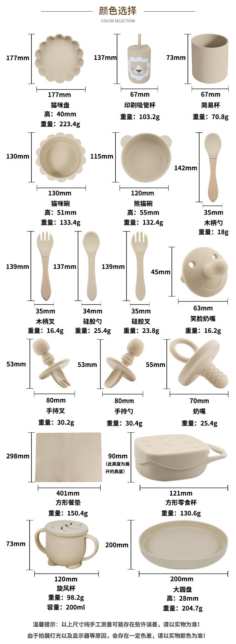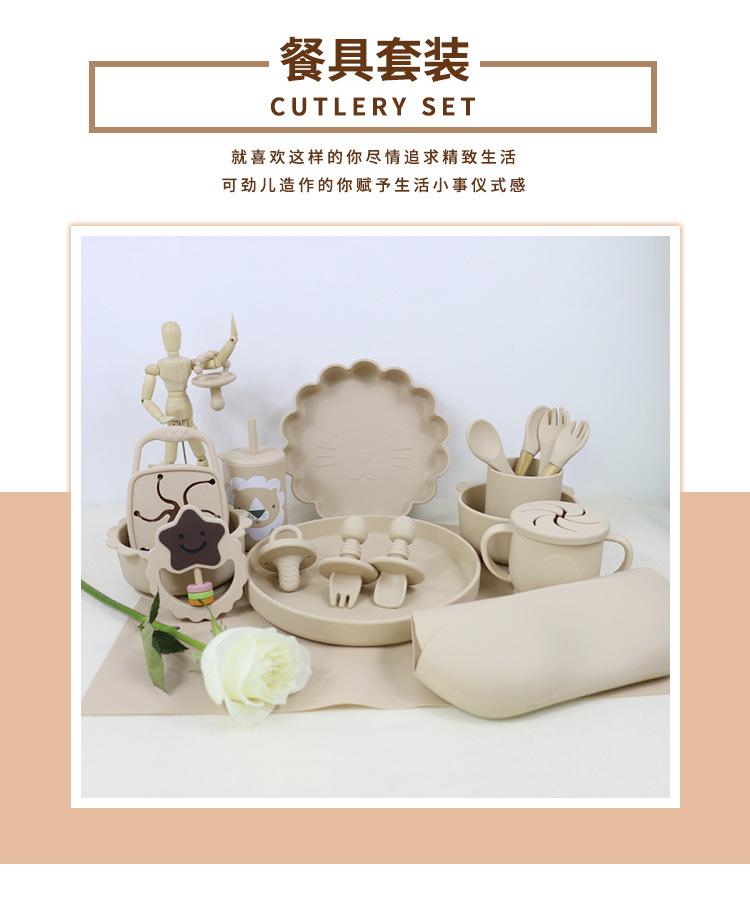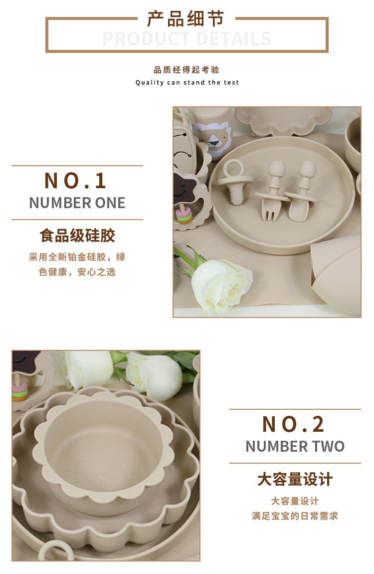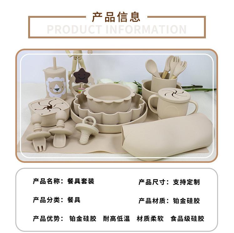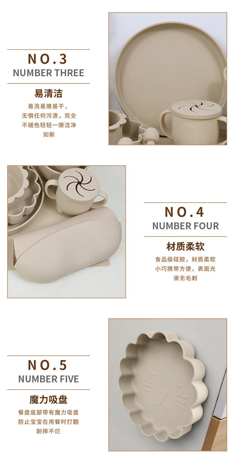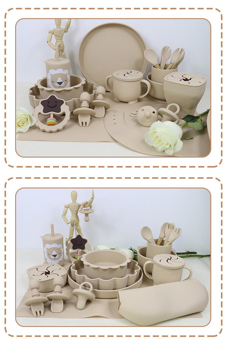 Set multicolor personalizado de silicona platino de grado alimenticio, tazón para niños color albaricoque, vajilla, set para alimentos complementarios para bebés, variedad