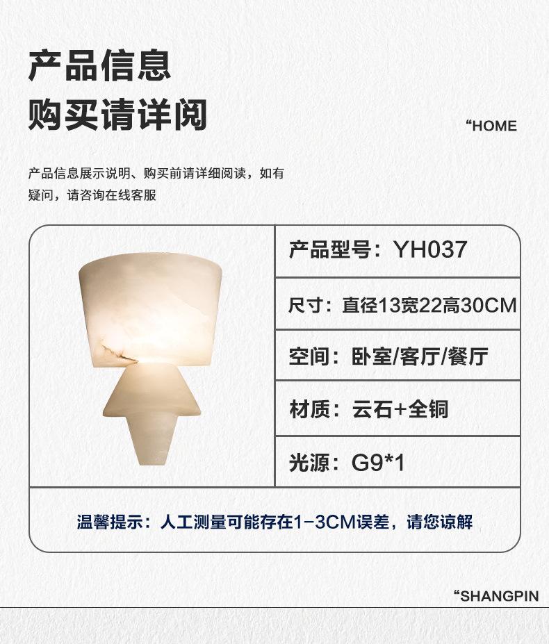 Lámpara de Pared de Mármol Español Todo Cobre Lámpara de Noche para Dormitorio Lámpara de Pared Creativa de Diseño Fondo de Sala de Estar Pasillo Pasillo Lámpara de Pared