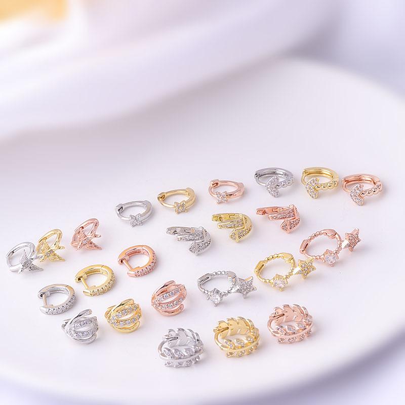 | nombre del producto | Nueva forma geométrica micro-incrustada circonita hueso de la oreja pequeño clip para la oreja aretes piercing joyería comercio exterior individual |