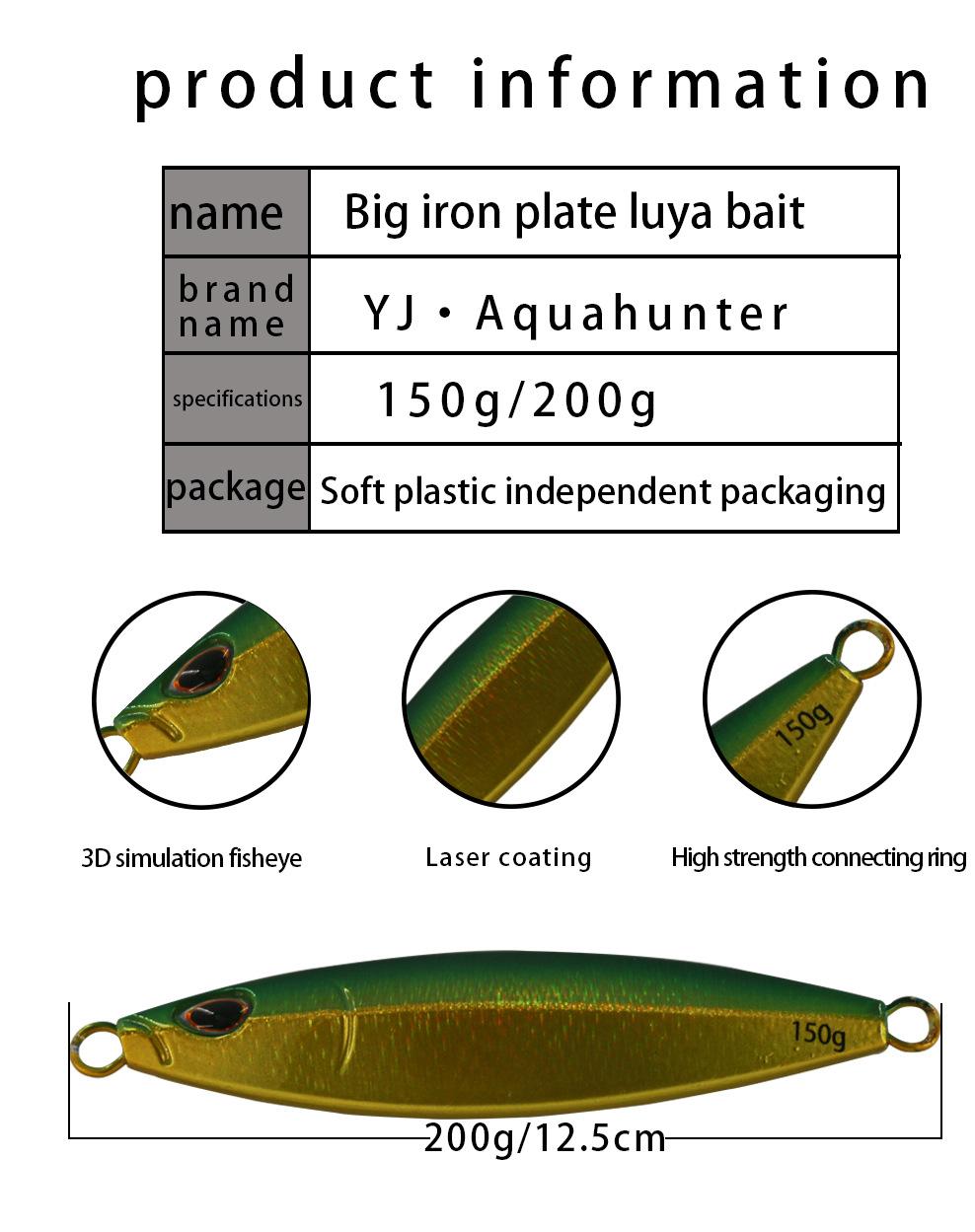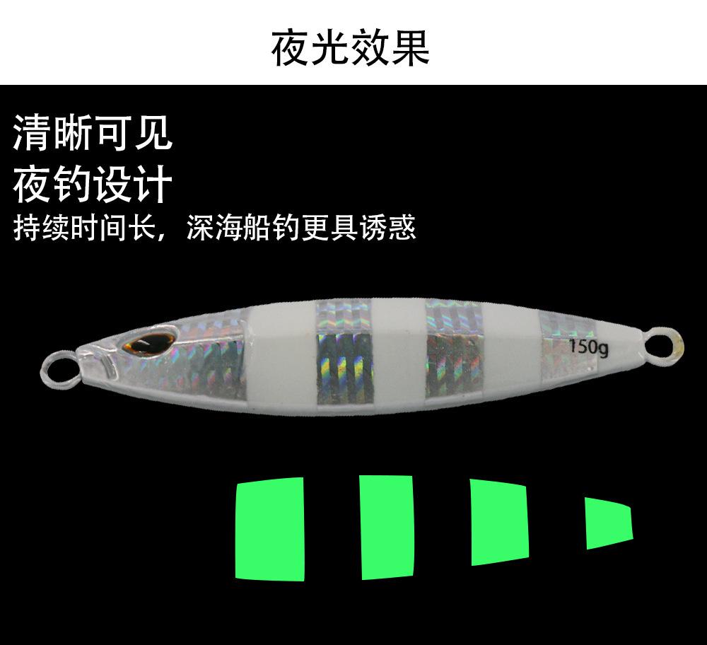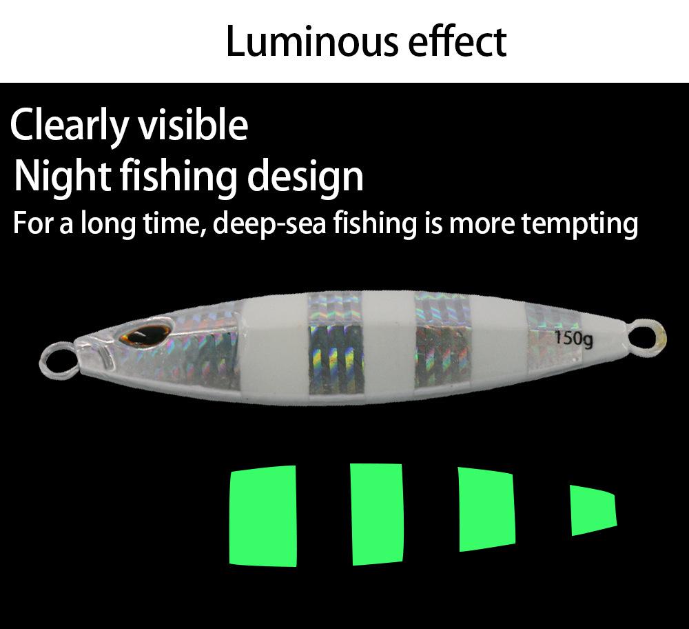 Yayuan - Pesca al aire libre en el mar, cola de caballo, placa de hierro, totalmente luminosa, 150 g, pesca nocturna en la montaña, cuchillo, cebo falso, 200 g, cebo de placa de hierro de movimiento lento