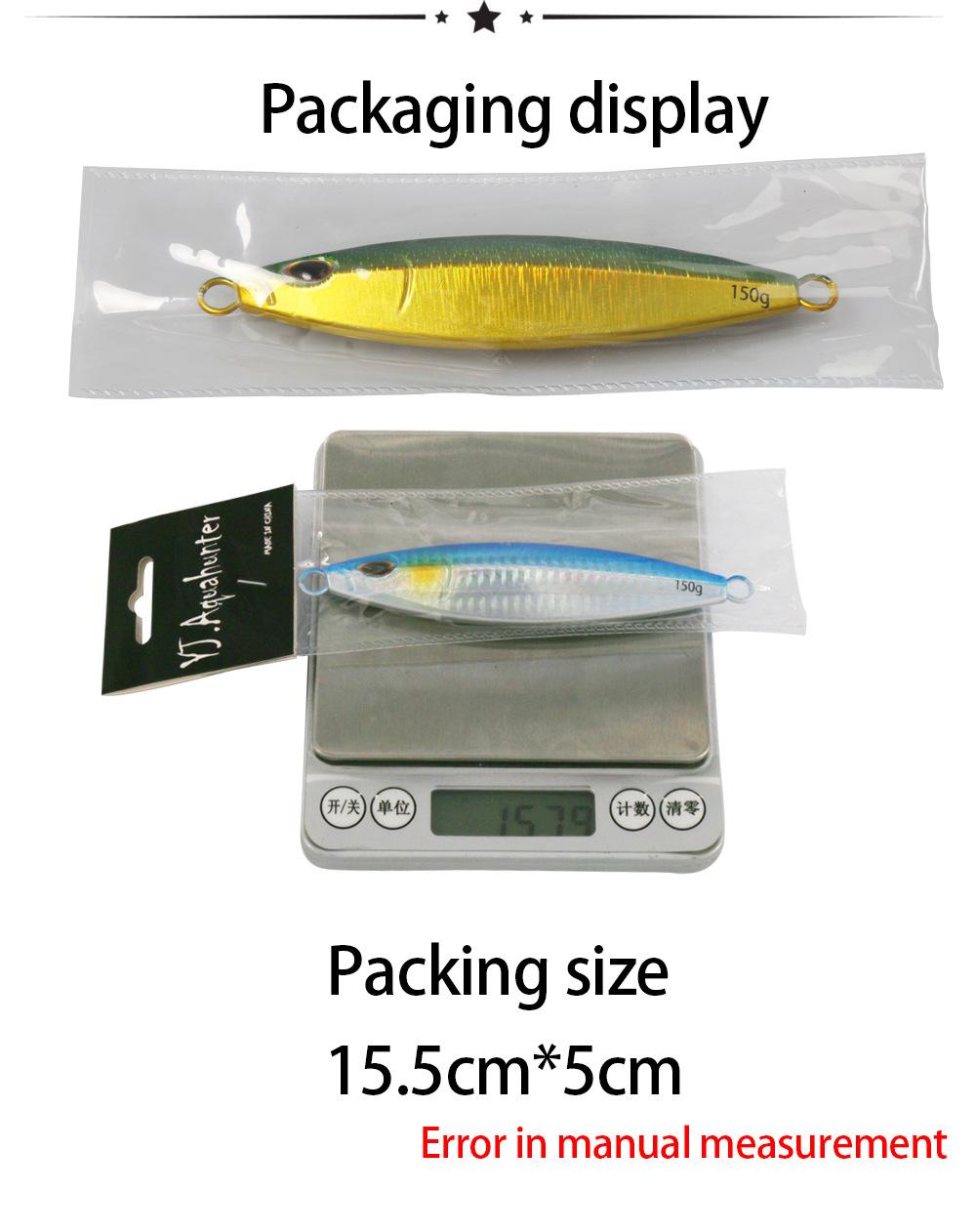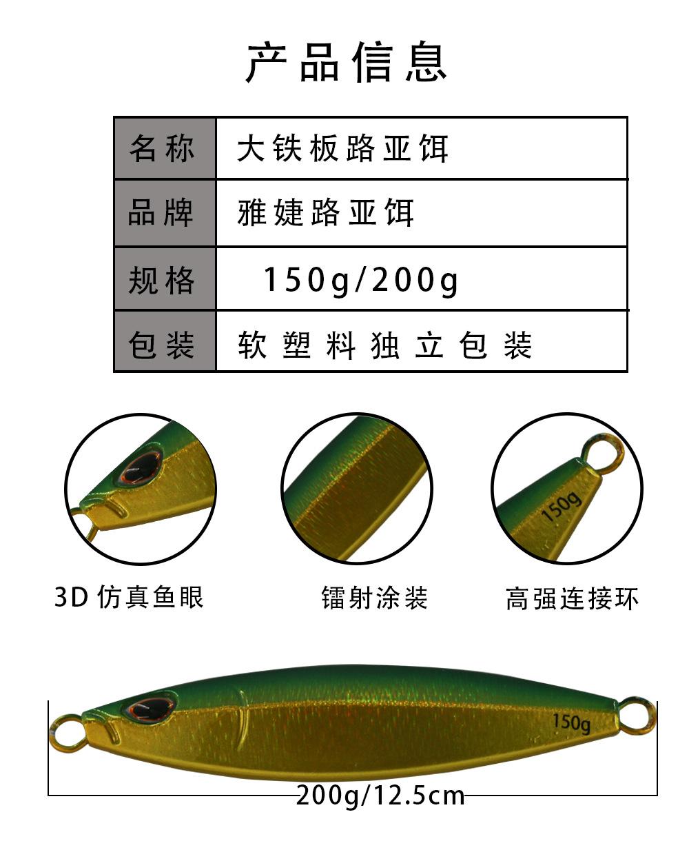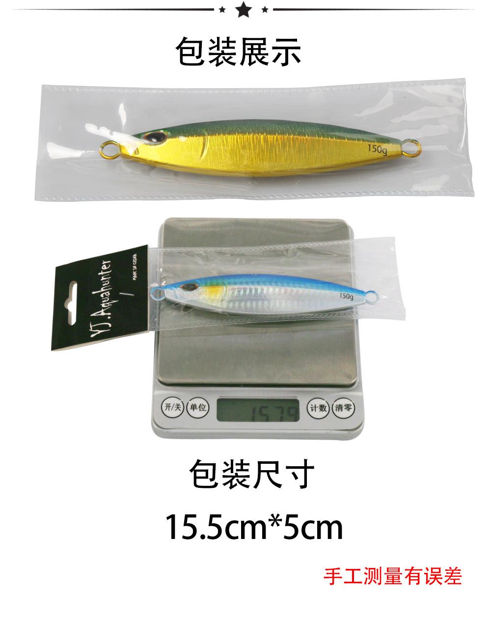 Yayuan - Pesca al aire libre en el mar, cola de caballo, placa de hierro, totalmente luminosa, 150 g, pesca nocturna en la montaña, cuchillo, cebo falso, 200 g, cebo de placa de hierro de movimiento lento