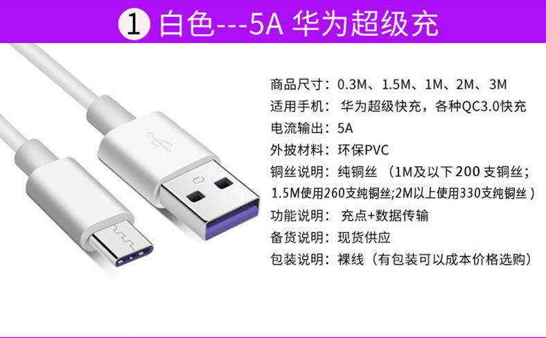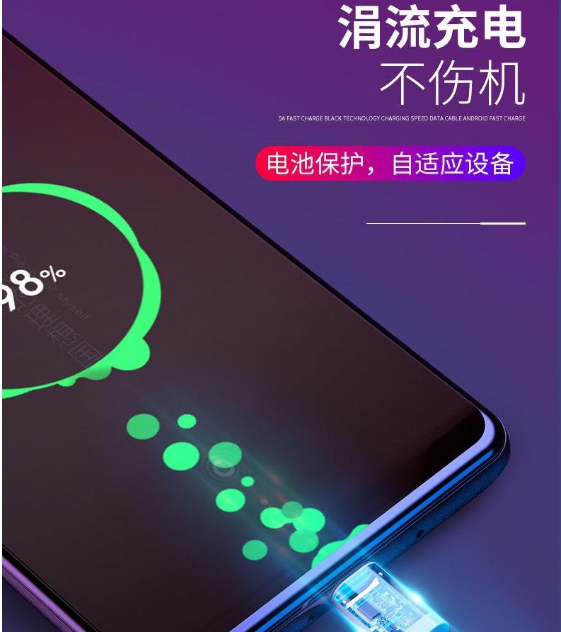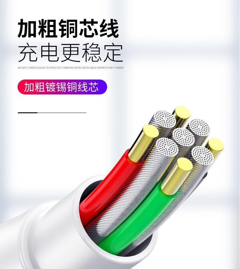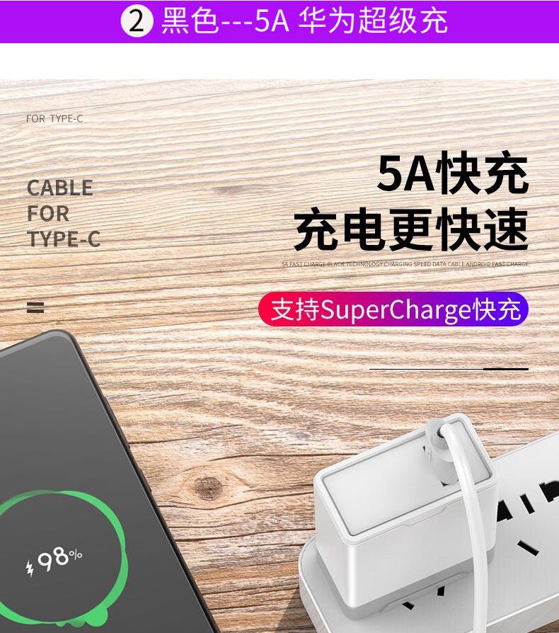 El nuevo cable de datos de carga rápida es adecuado para el cable de carga 5A del teléfono móvil Huawei Xiaomi con interfaz tipo C de Apple Android