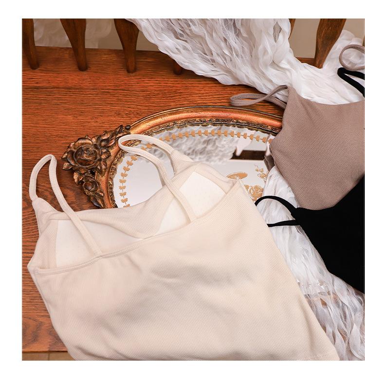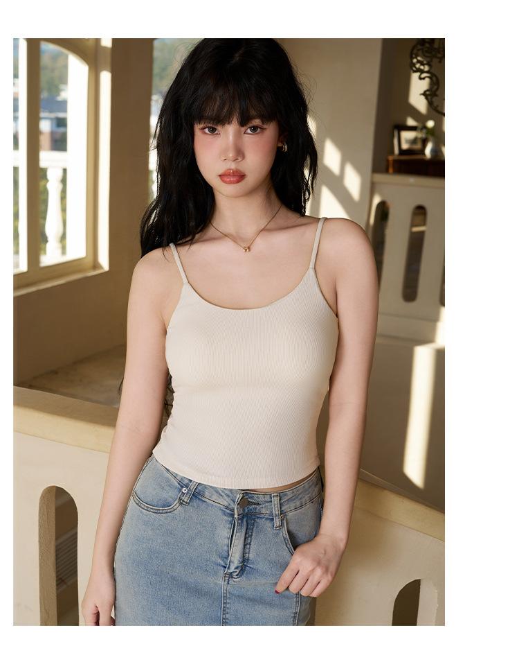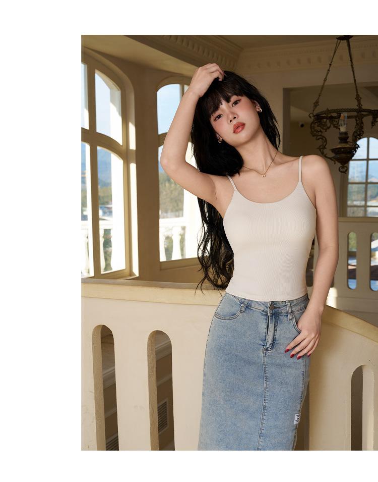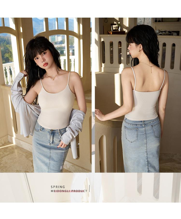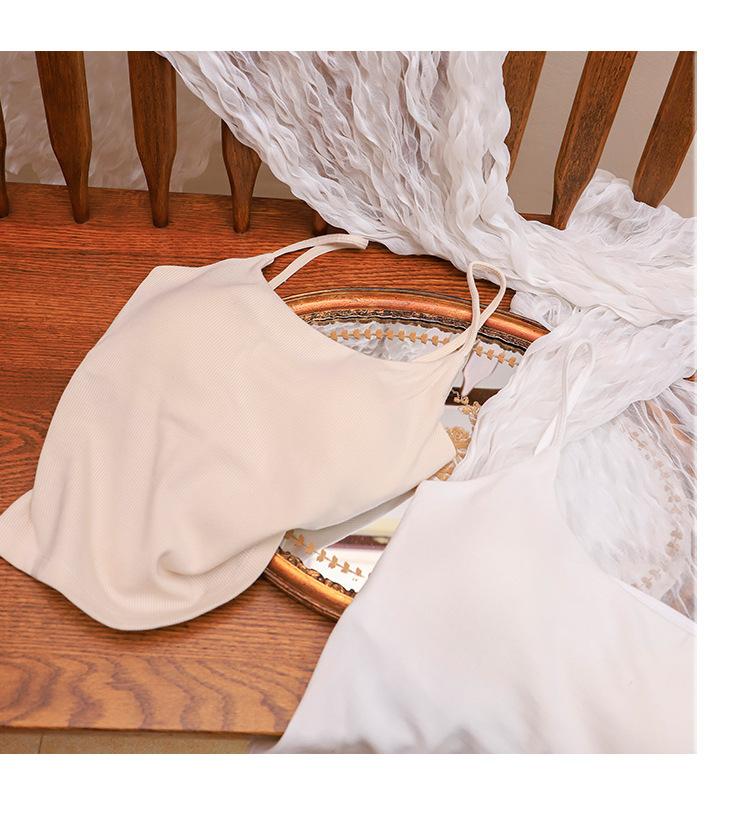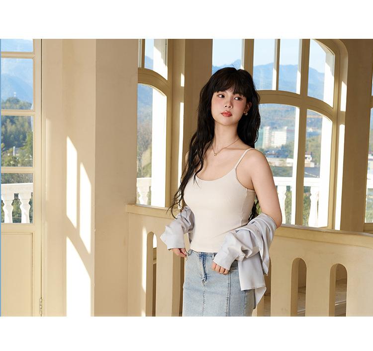 Parte inferior básica de primavera 2024, parte superior exterior de una pieza de algodón y seda Youcan con copa pequeña y tirantes finos para mujer