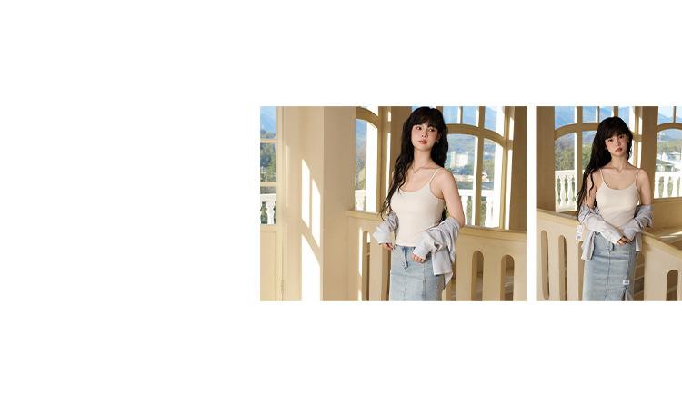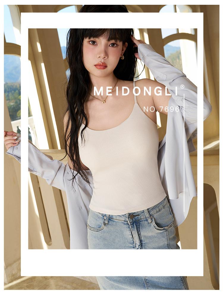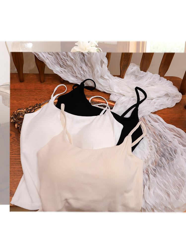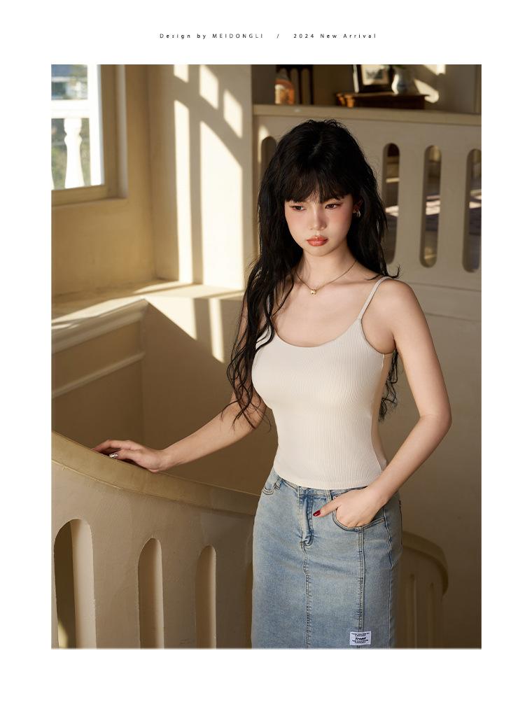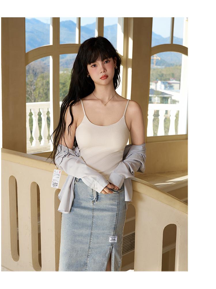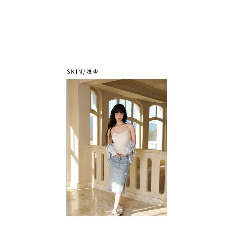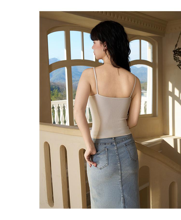 Parte inferior básica de primavera 2024, parte superior exterior de una pieza de algodón y seda Youcan con copa pequeña y tirantes finos para mujer