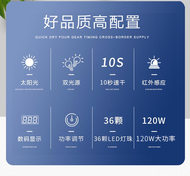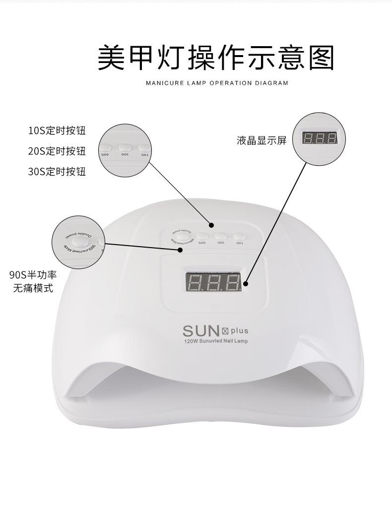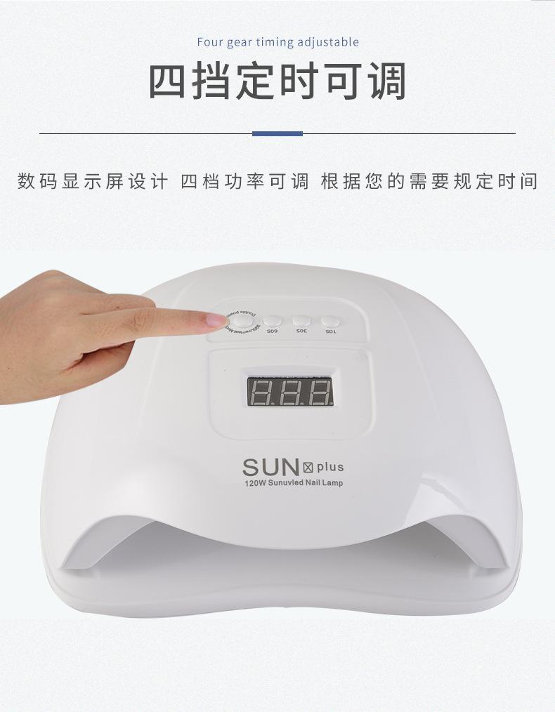 Lámpara de uñas Sunxplus de 120 W, máquina de terapia de luz para uñas de secado rápido de alta potencia, lámpara de terapia de luz inteligente de cuatro velocidades, venta al por mayor transfronteriza