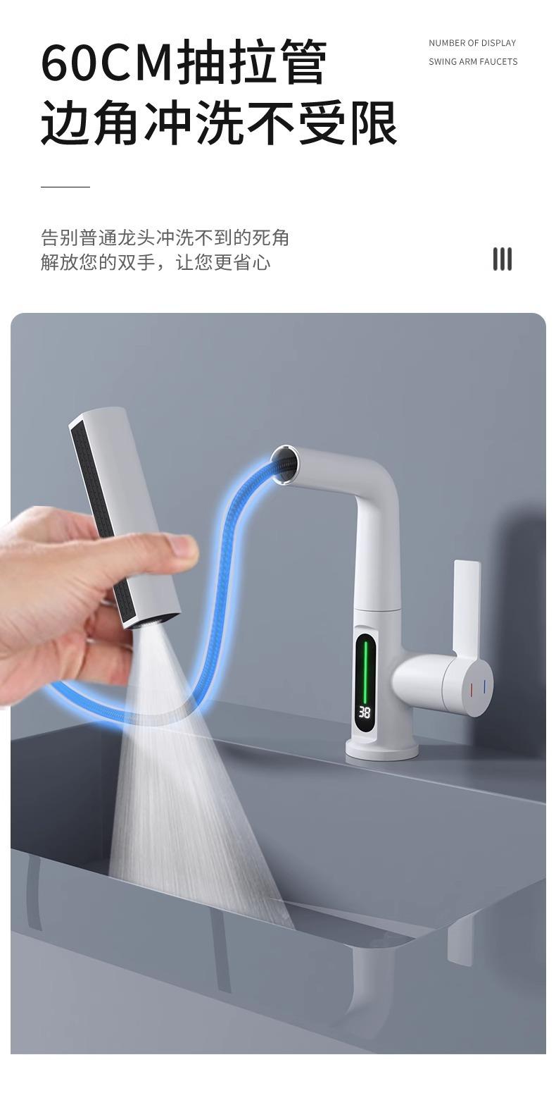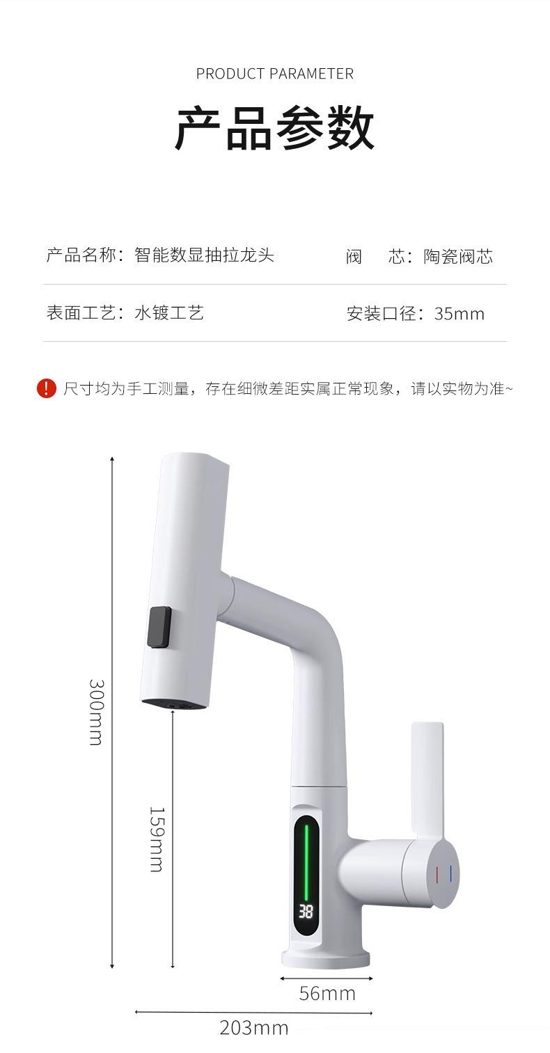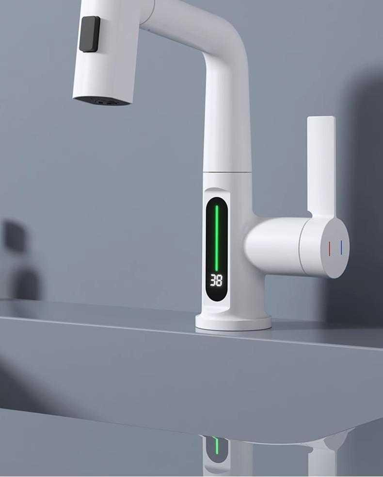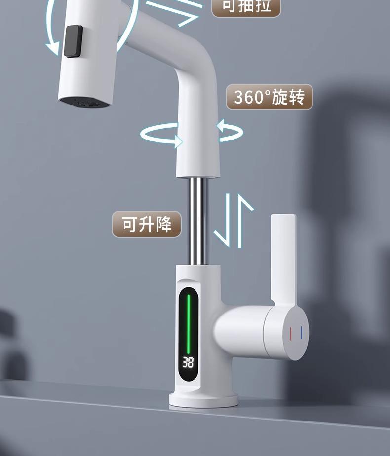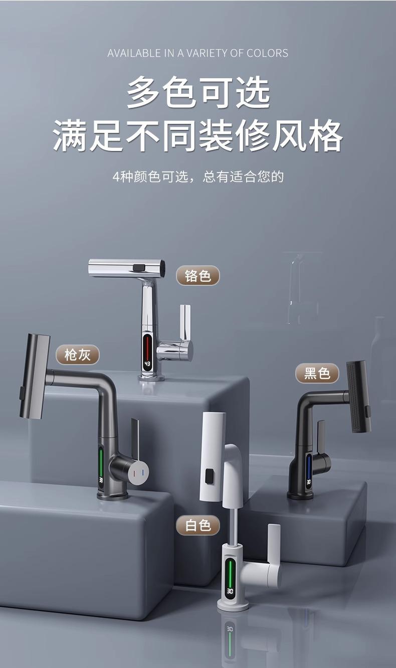 Grifo de lavabo extraíble con pantalla digital inteligente Feiyu para el hogar, lavabo de baño, grifo elevable, lavabo de agua fría y caliente