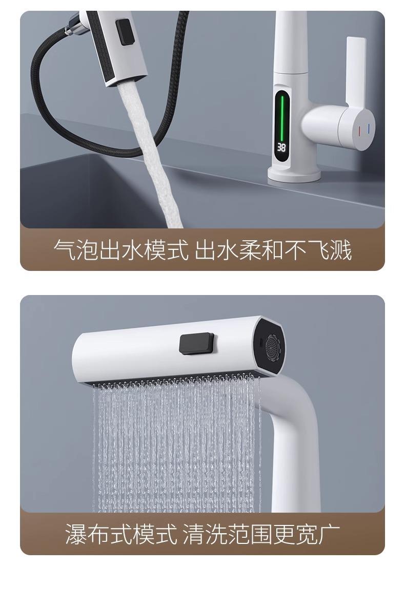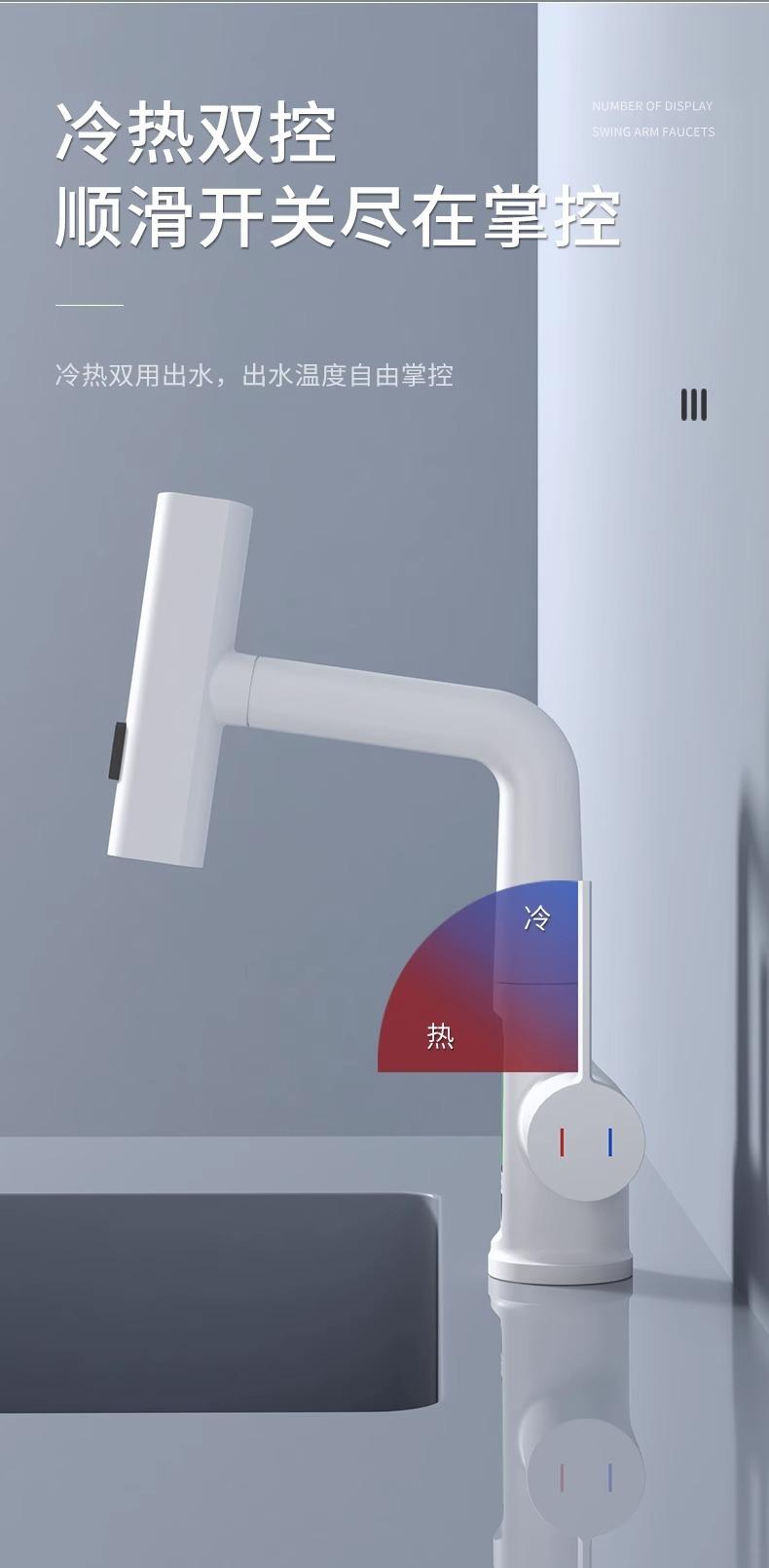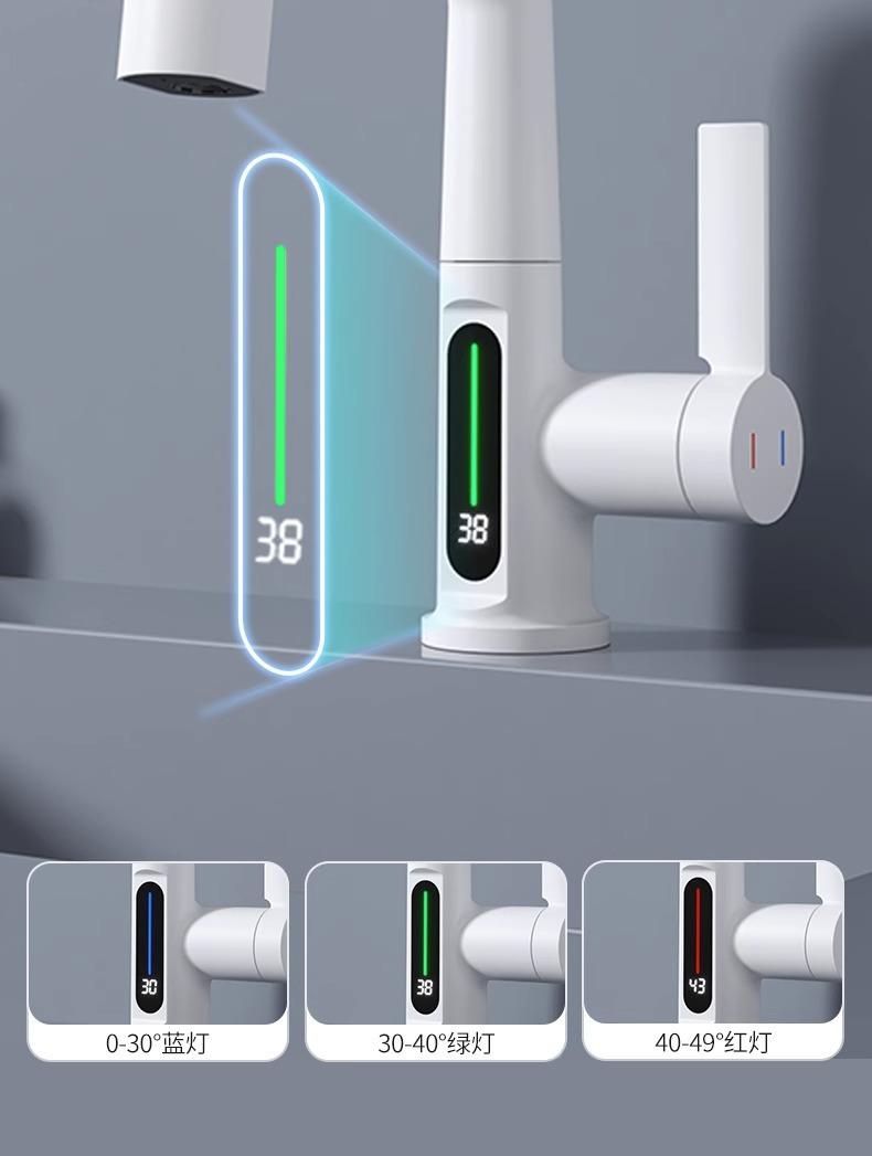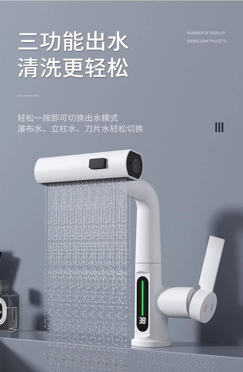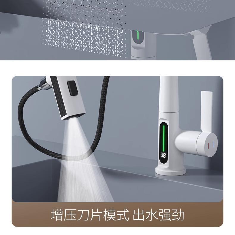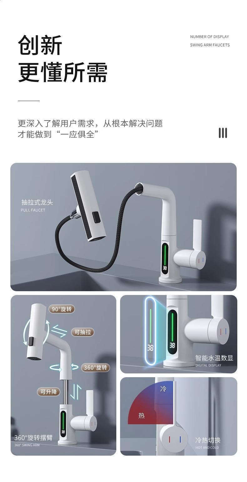 Grifo de lavabo extraíble con pantalla digital inteligente Feiyu para el hogar, lavabo de baño, grifo elevable, lavabo de agua fría y caliente