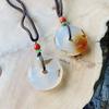 Ice green chalcedony Pingan inlay 25mm (excluding chain) MN2070417, Ice green chalcedony flat buckle inlay 30m...
