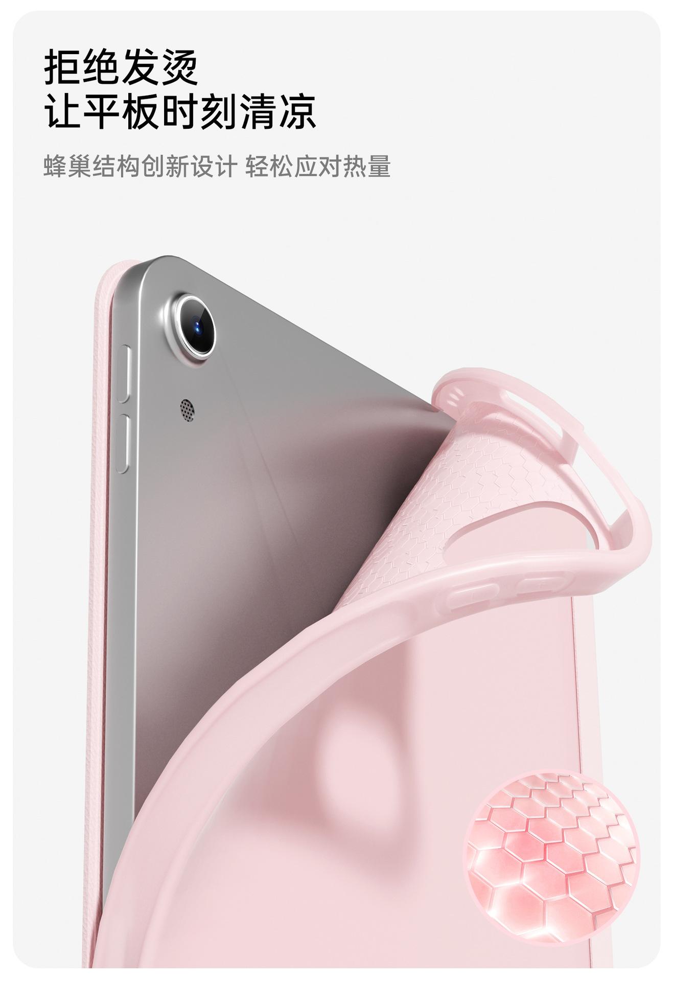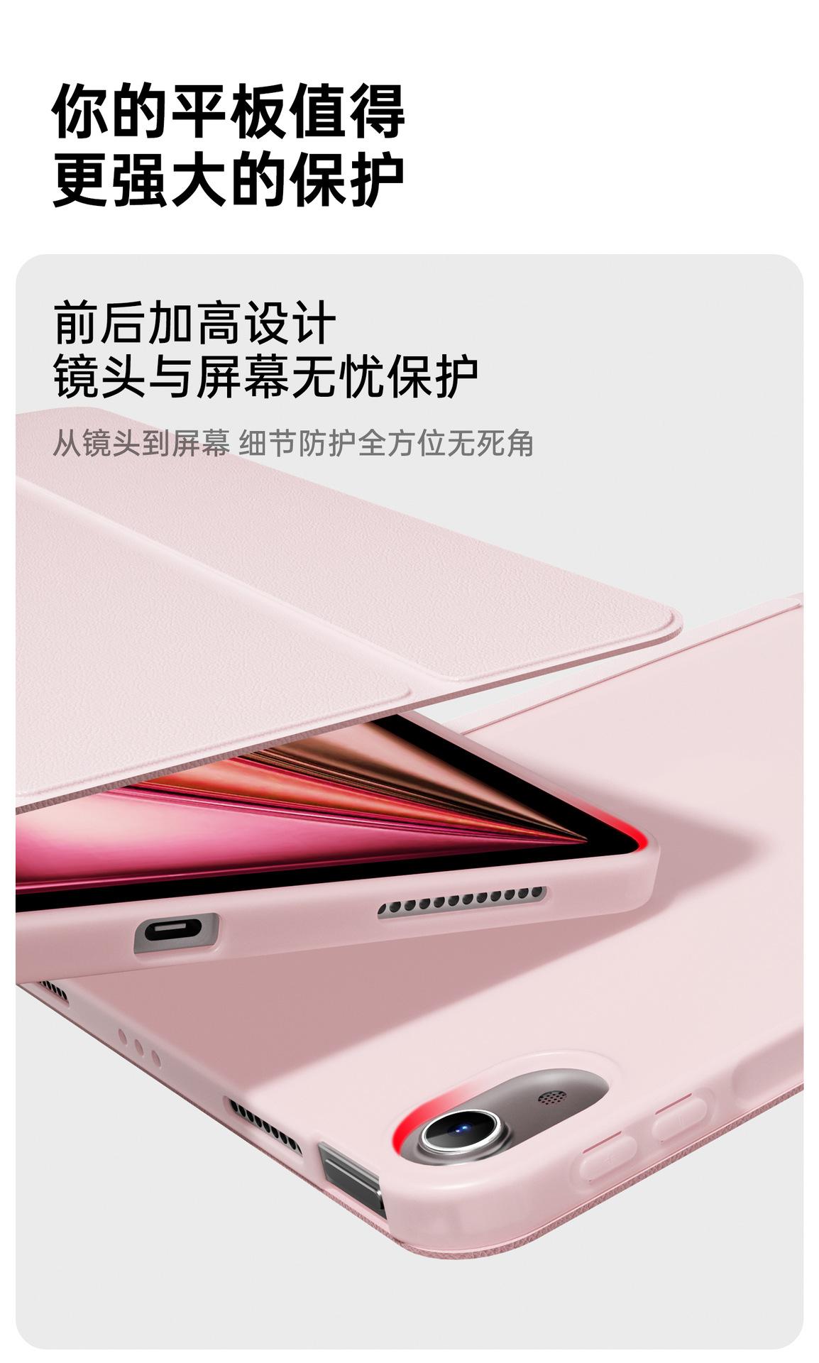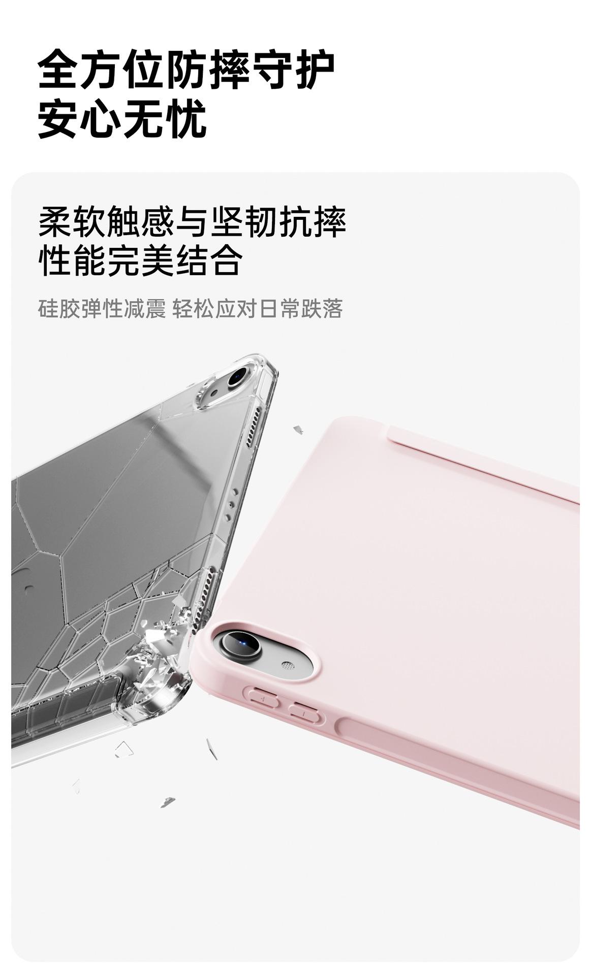 Se trata de un estuche triple con forro de color a juego y carcasa resistente a caídas.