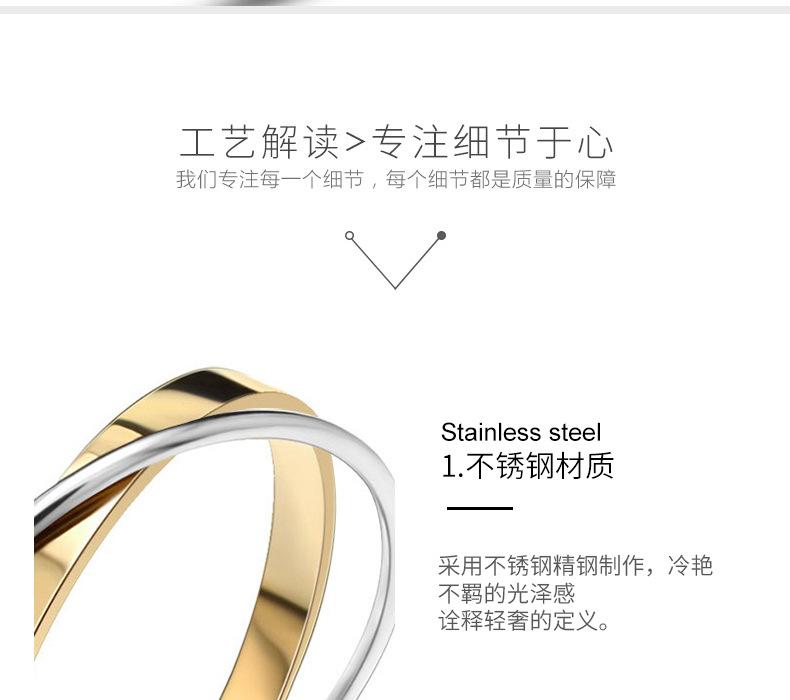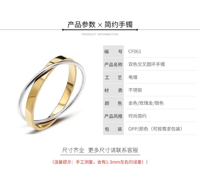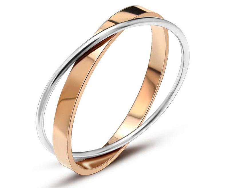 Pulsera de anillo cruzado bicolor directo de fábrica pulsera lisa de titanio para pareja pulsera de acero inoxidable oro rosa joyería