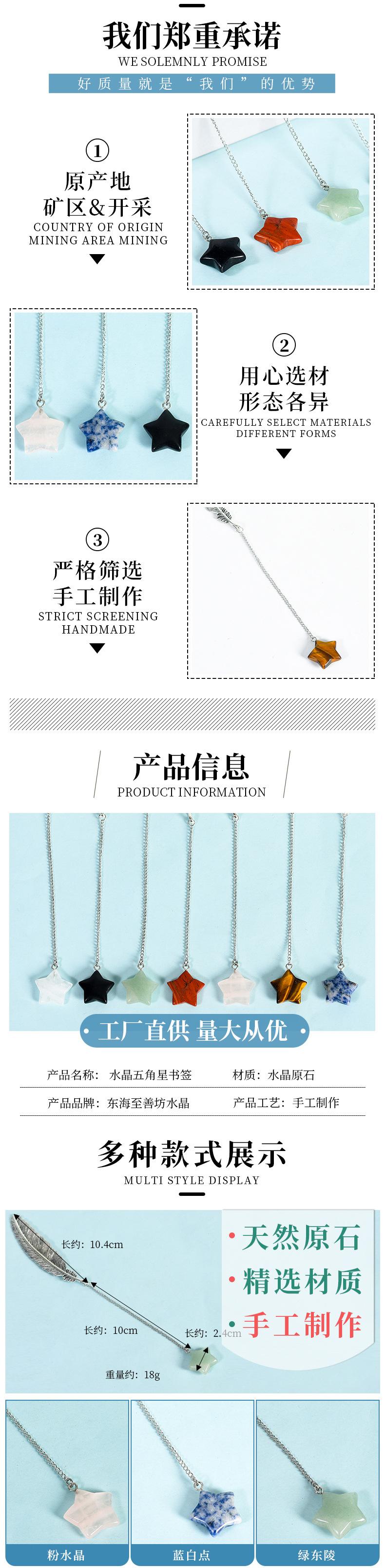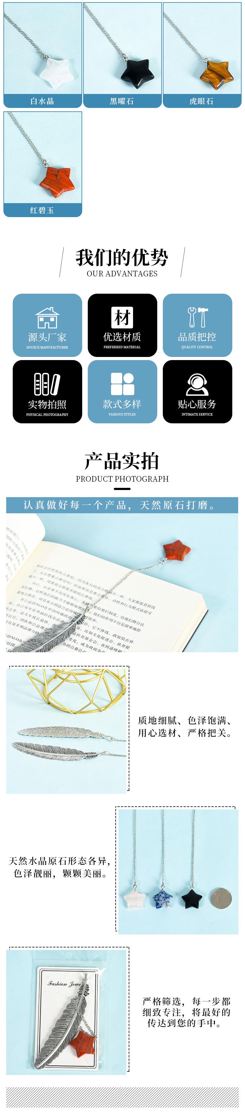 Marcapáginas con colgante de estrella de cinco puntas de cristal natural, piedra original de amatista, regalo creativo transfronterizo para estudiantes.